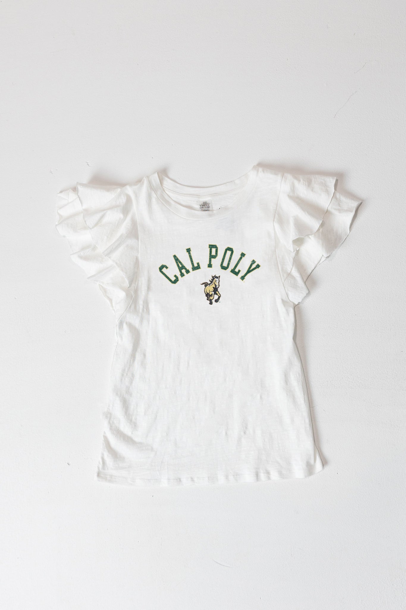 Feel the excitement of game day with our Cal Poly Mustangs flutter sleeve crewneck top. This short sleeve ruffle sleeve slub knit top is a versatile addition to any wardrobe. Perfect for fans who want to look good and feel great.