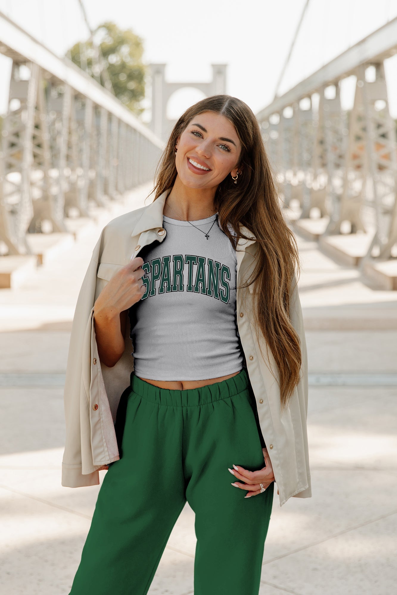 MICHIGAN STATE SPARTANS Well Played Ribbed Crop Tank By Madi Prewett Troutt