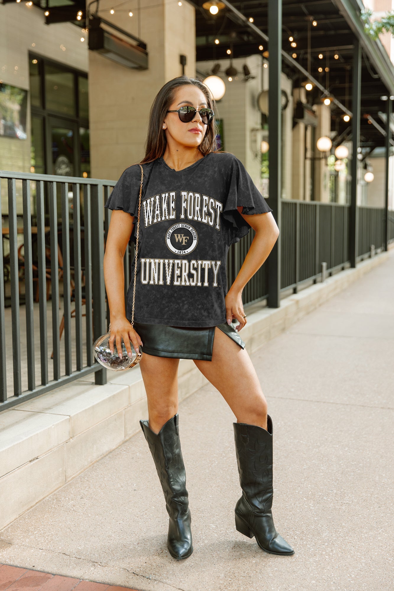 WAKE FOREST DEMON DEACONS VICTORY MODE FLUTTER SLEEVE TEE IN BLACK