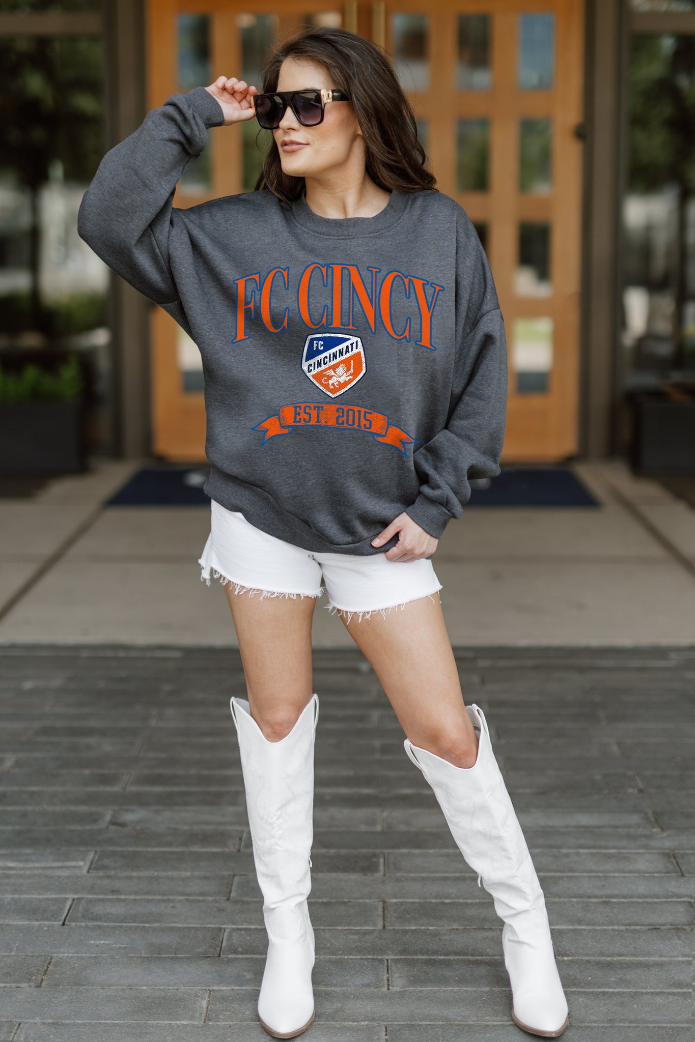 Stand out from the crowd in our Fc Cincinnati premium fleece long sleeve sweatshirt. Boasting an oversized fit, crewneck and ribbed knit neckline, wrists, and waistband, it effortlessly blends comfort with fashion. Show your support for your favorite school or team in this irresistibly soft sweatshirt.