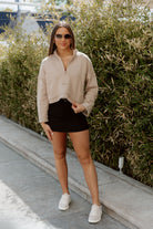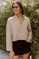 ZIP COZY CROP SWEATSHIRT IN TAUPE