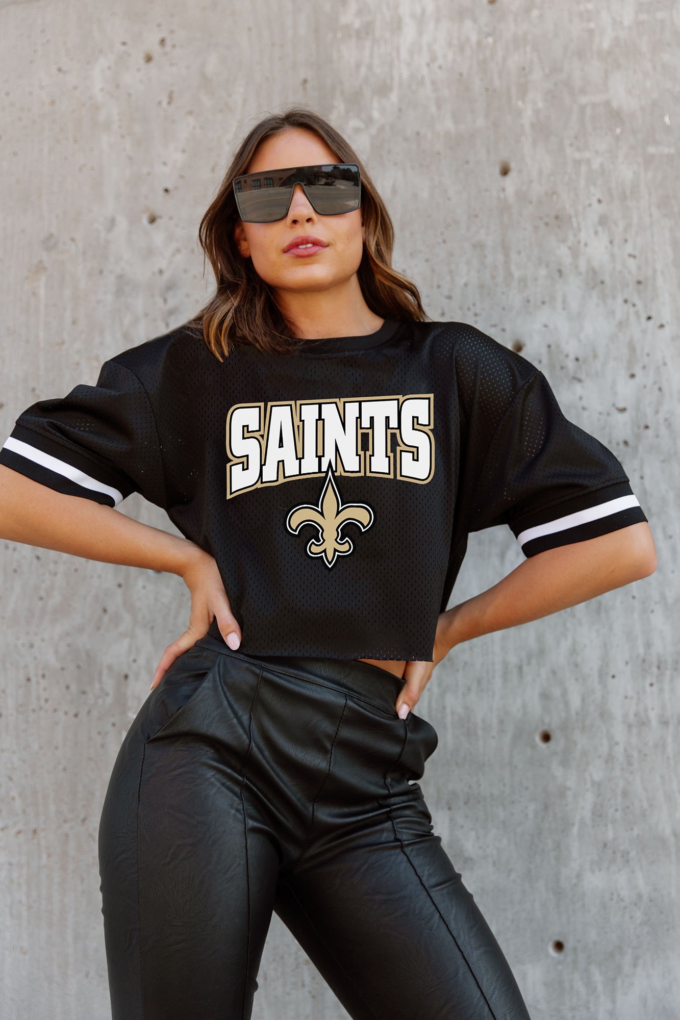 NEW ORLEANS SAINTS Automatic Down Lightweight Striped Sleeve Top