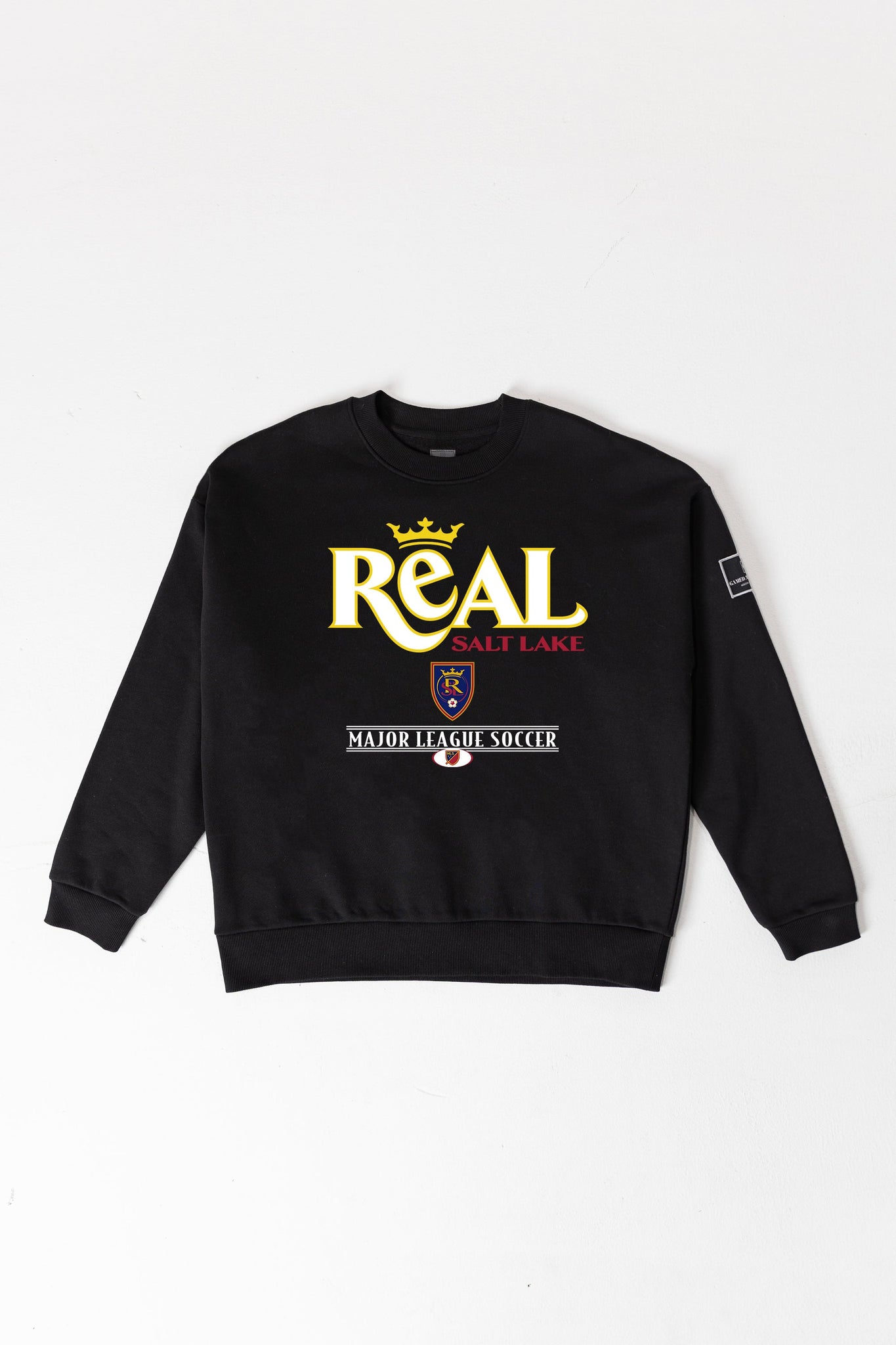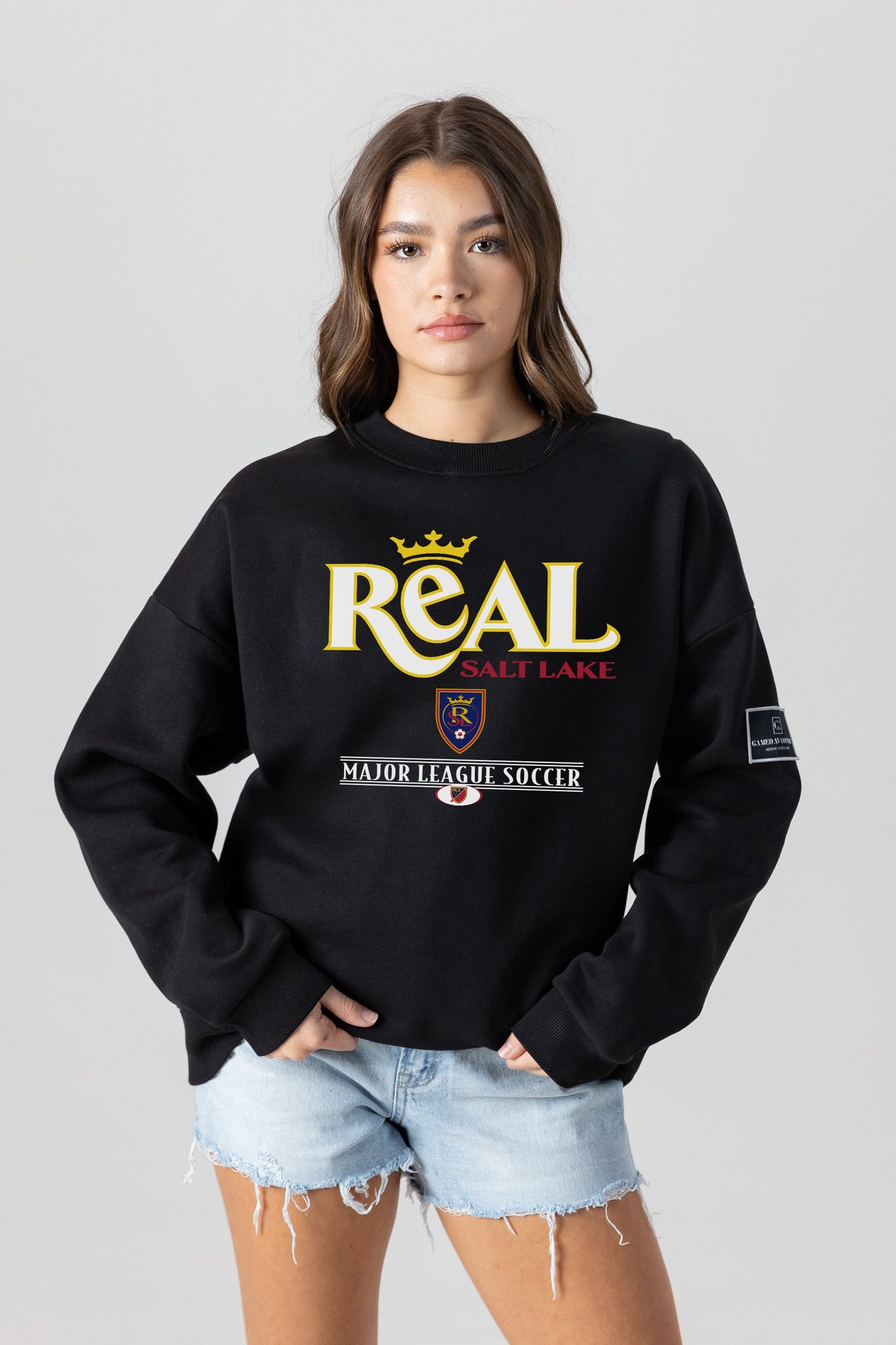 Get ready to cheer on your Real Salt Lake with our black label premium fleece drop-shoulder crewneck with ribbed knit neckline, cuffs, and waistband. From the game to the everyday, this is your go-to choice.