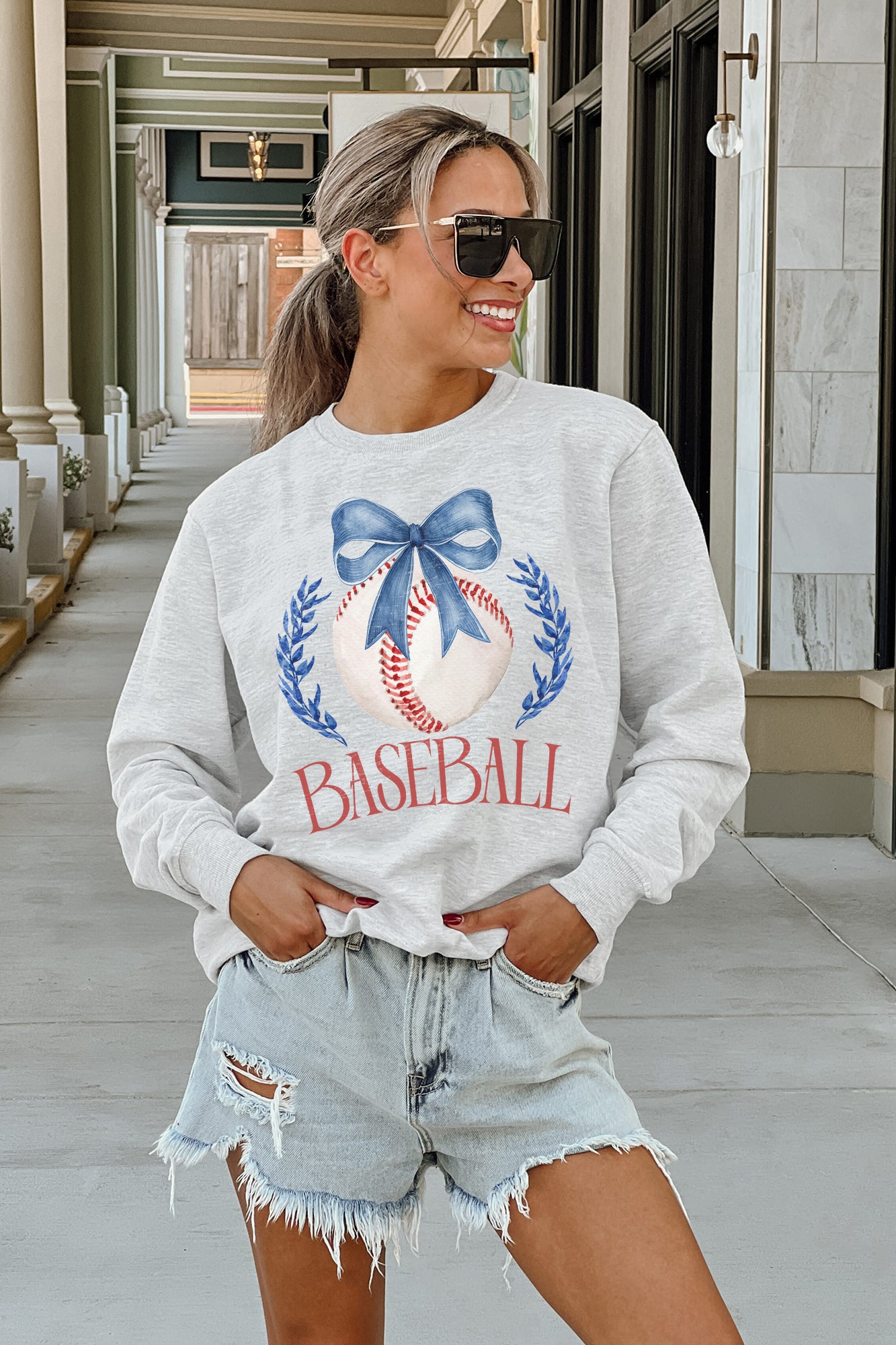 BASEBALLS AND BOWS PREMIUM FLEECE DROP SHOULDER CREWNECK PULLOVER