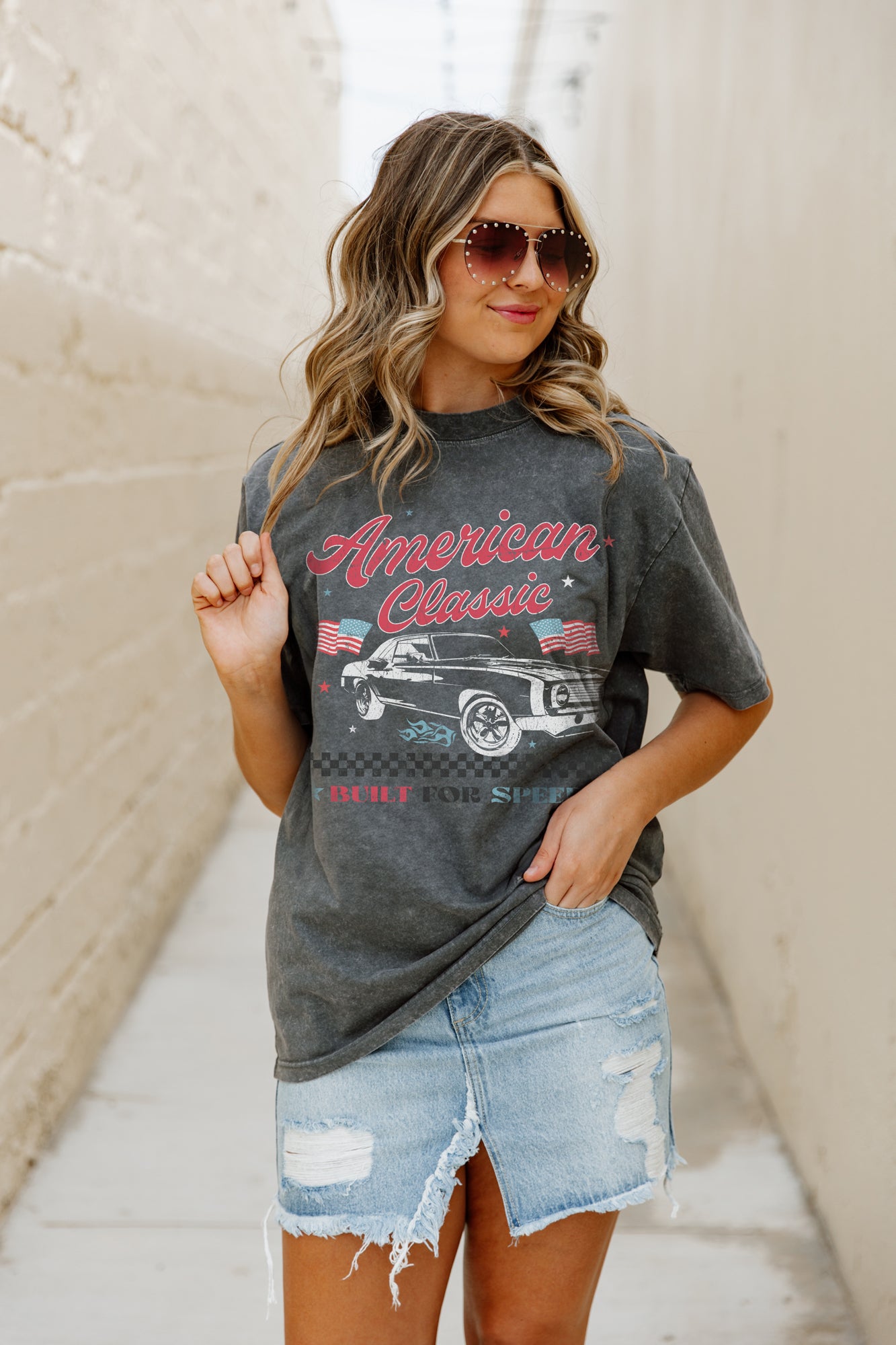Experience timeless style with our AMERICAN CLASSIC OVERSIZED VINTAGE WASH TEE. Made with quality materials and featuring an oversized fit, this tee combines comfort and fashion. Its vintage wash adds a unique touch to your wardrobe, making it a must-have for any fashion-forward individual.