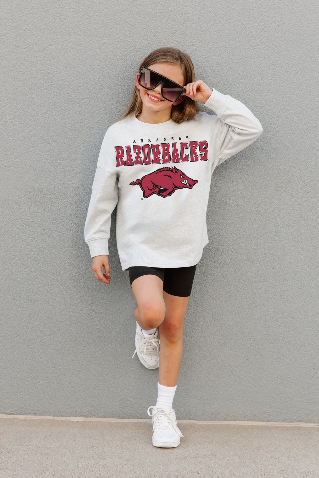 Designed for the ultimate fan, our Arkansas Razorbacks drop shoulder long sleeve tee combines a relaxed fit, heathered finish and luxurious French Terry knit. With a ribbed neckline and cuffs, you'll stay stylish and comfortable while showing your unwavering team support.
