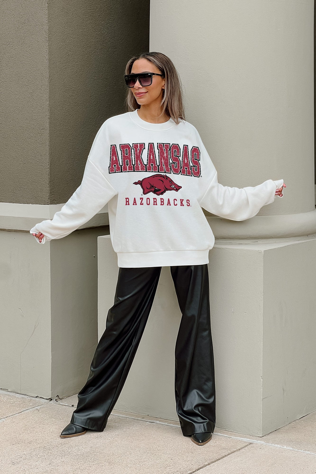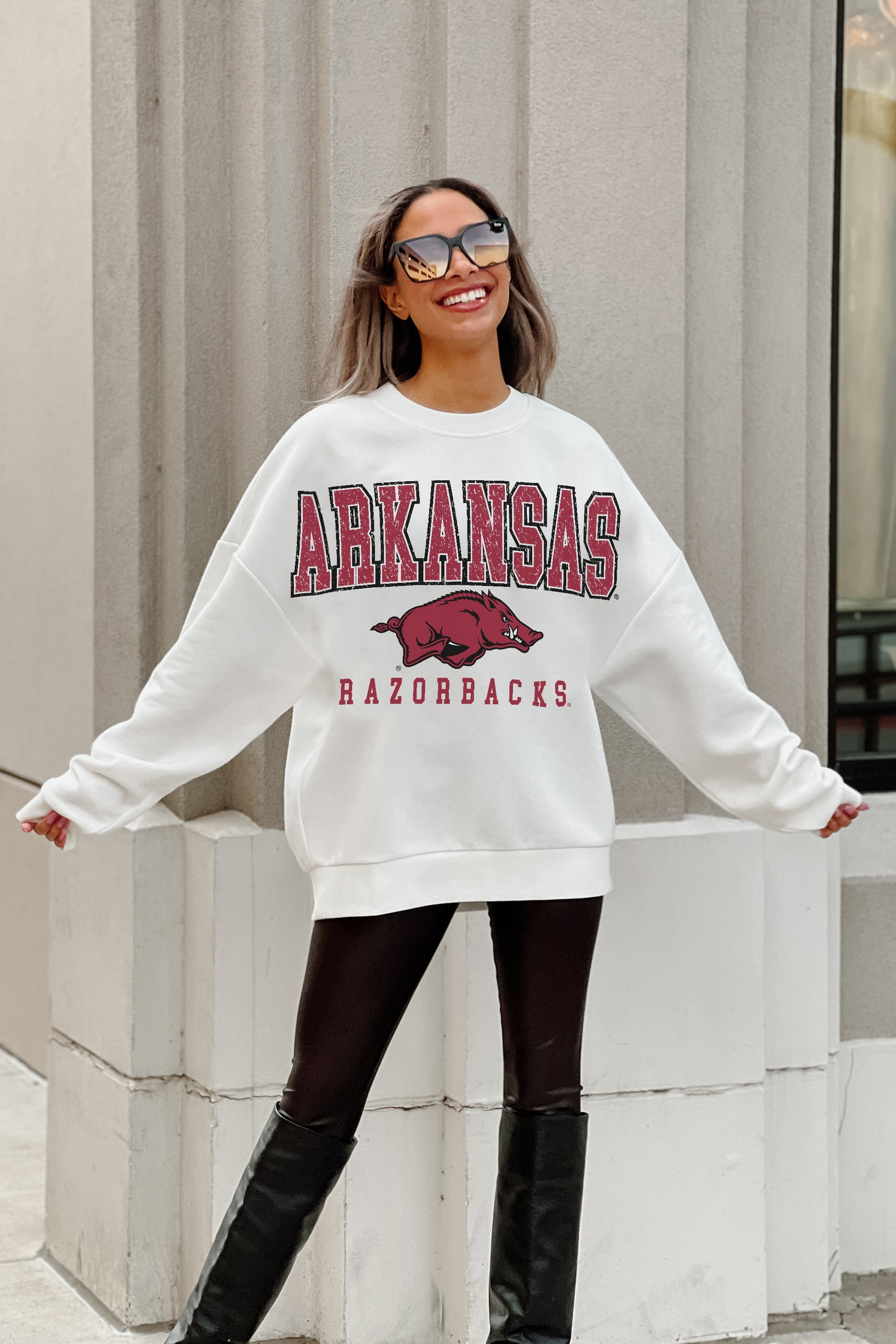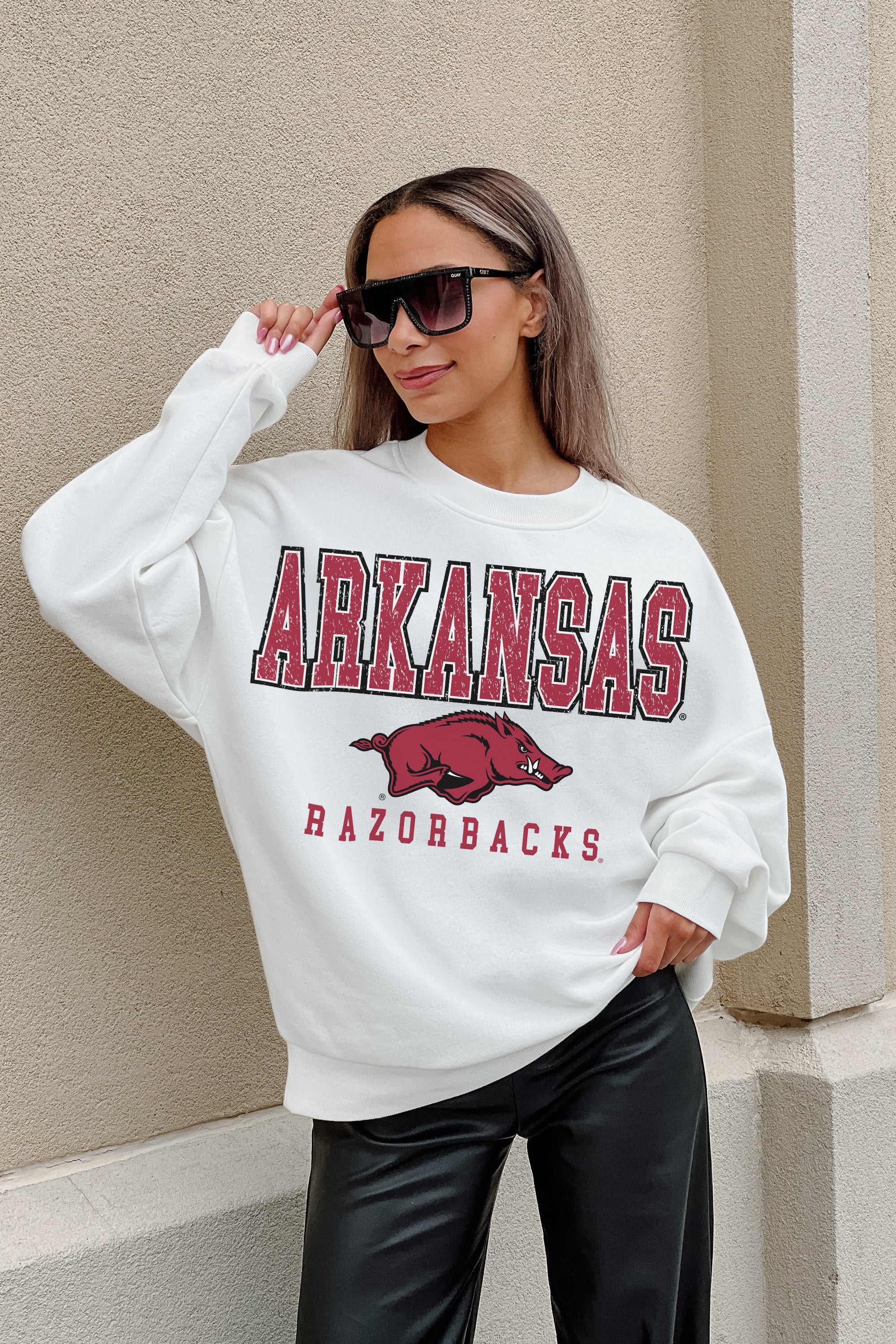 ARKANSAS RAZORBACKS FREESTYLE PREMIUM FLEECE DROP SHOULDER CREWNECK PULLOVER
