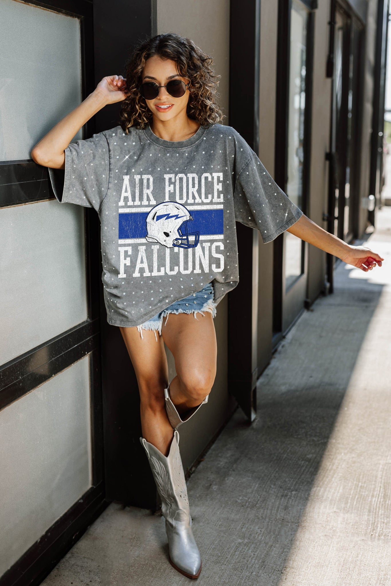 AIR FORCE FALCONS ON THE BALL MINI RHINESTONE SHORT SLEEVE CLASSIC TEE
