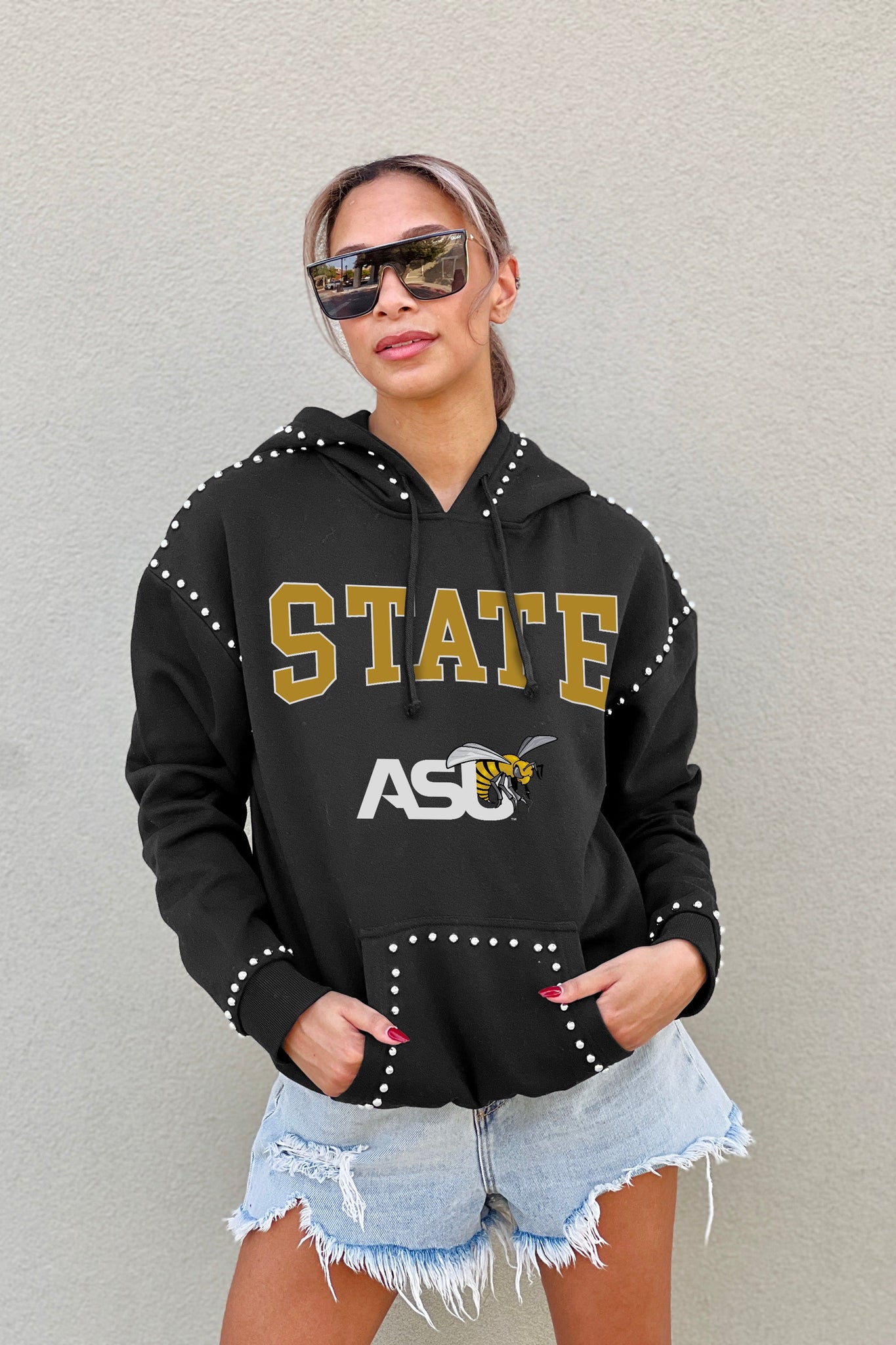 ALABAMA STATE HORNETS BELLE OF THE BALL STUDDED DETAIL FLEECE FRONT POCKET HOODIE