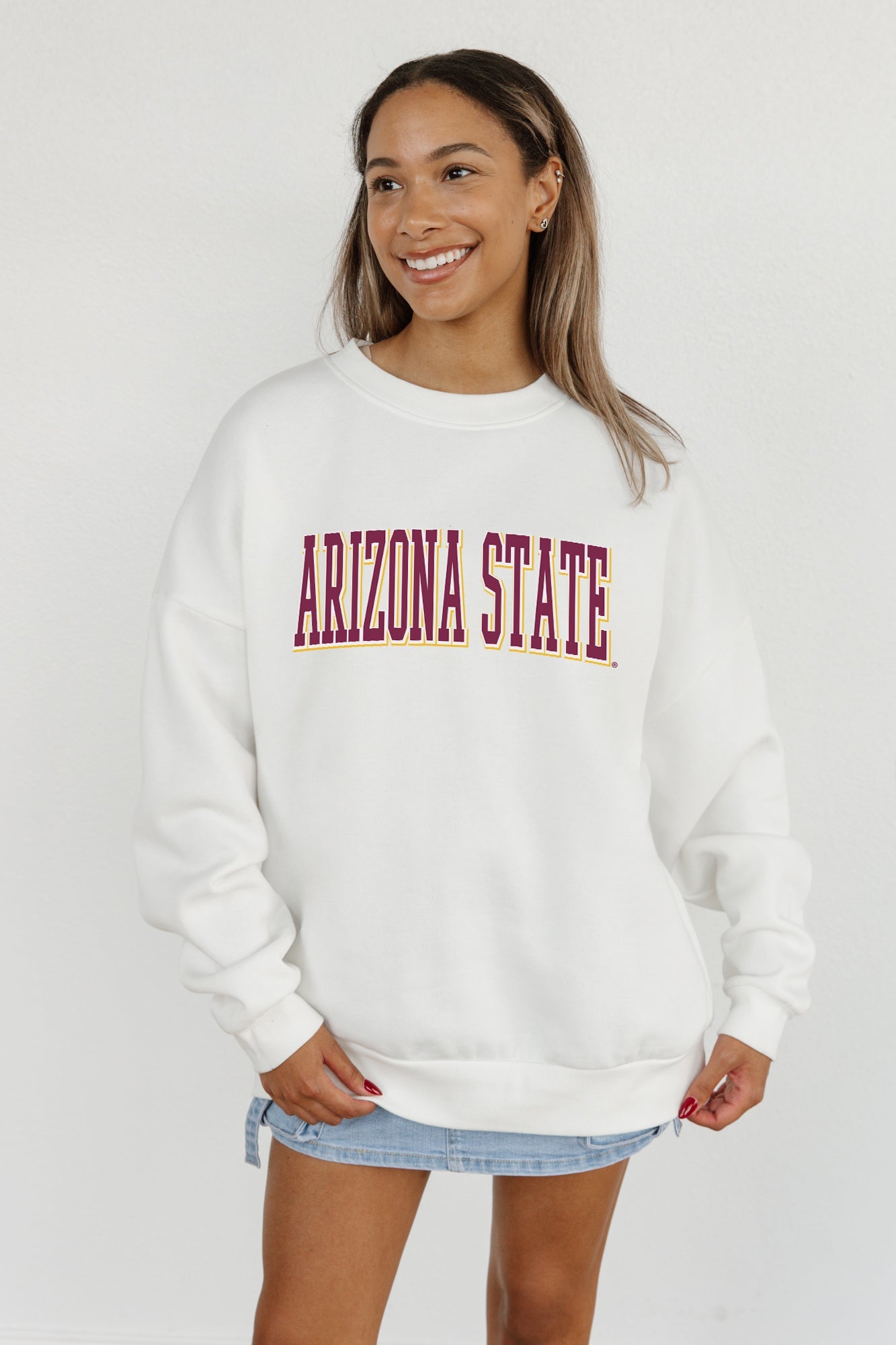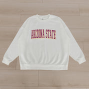 Stand out from the crowd in our Arizona State Sun Devils premium fleece long sleeve sweatshirt. Boasting an oversized fit, crewneck and ribbed knit neckline, wrists, and waistband, it effortlessly blends comfort with fashion. Show your support for your favorite school or team in this irresistibly soft sweatshirt.