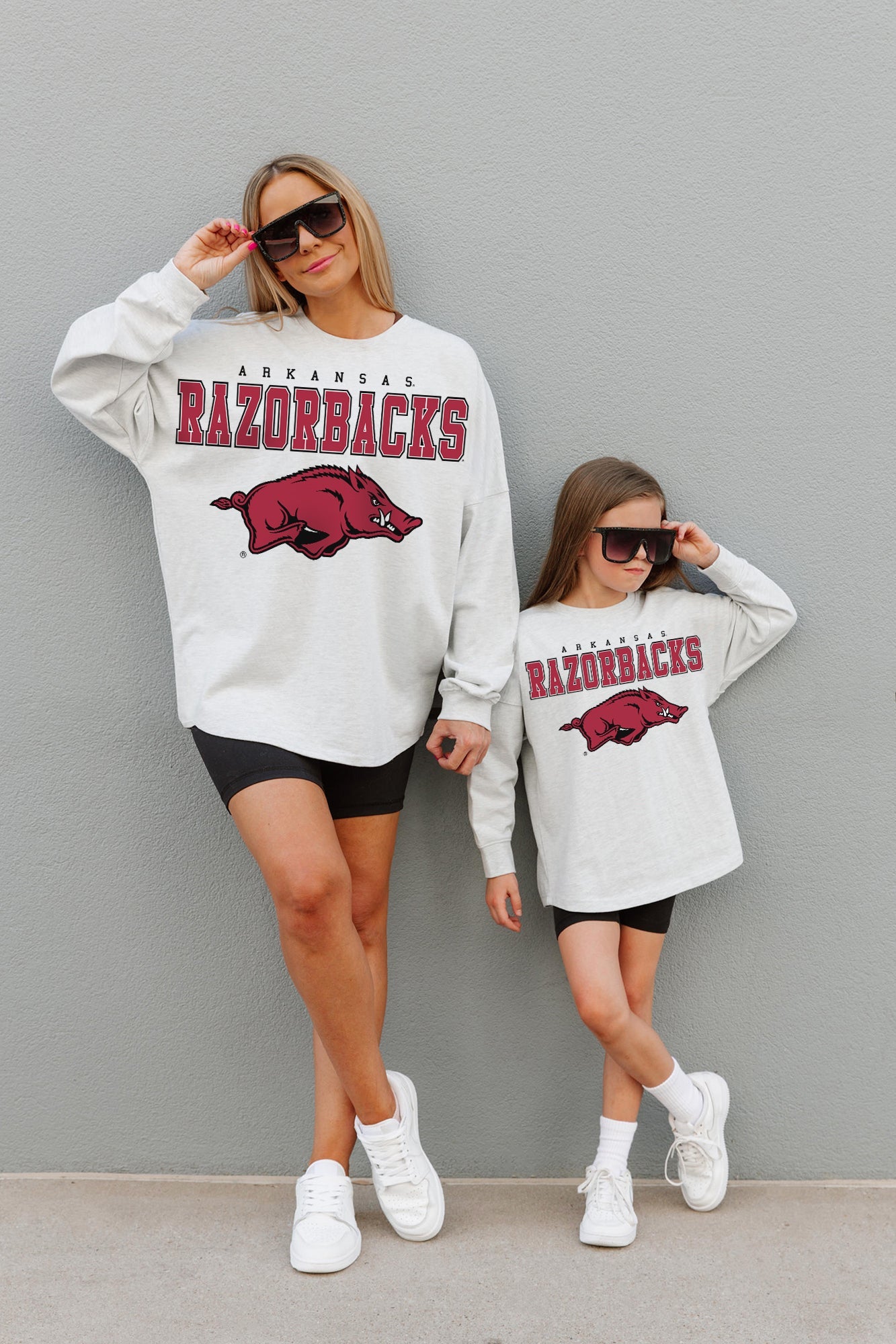 Designed for the ultimate fan, our Arkansas Razorbacks drop shoulder long sleeve tee combines a relaxed fit, heathered finish and luxurious French Terry knit. With a ribbed neckline and cuffs, you'll stay stylish and comfortable while showing your unwavering team support.