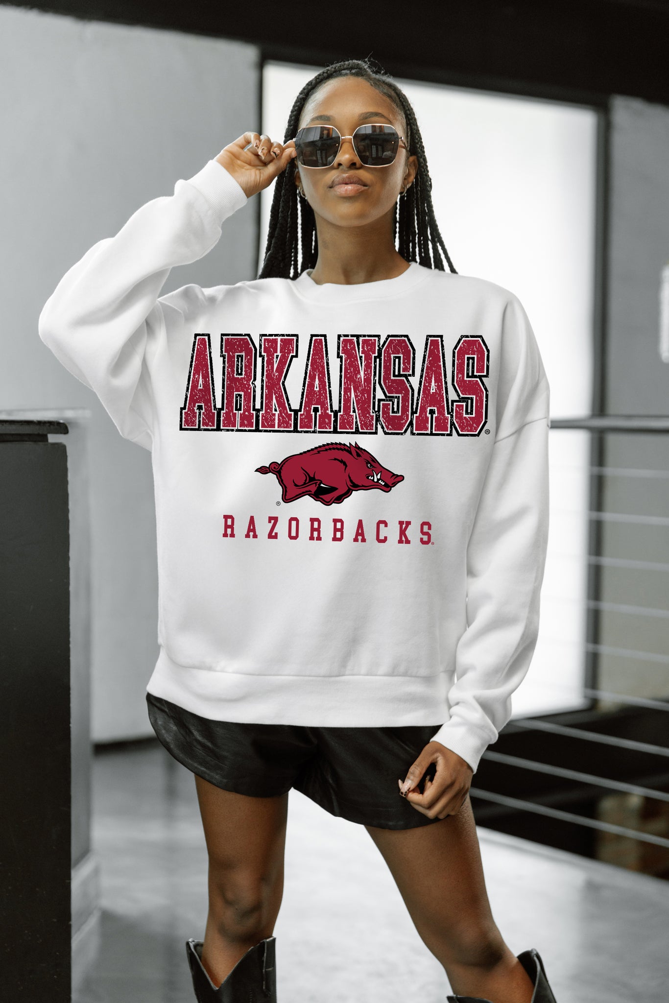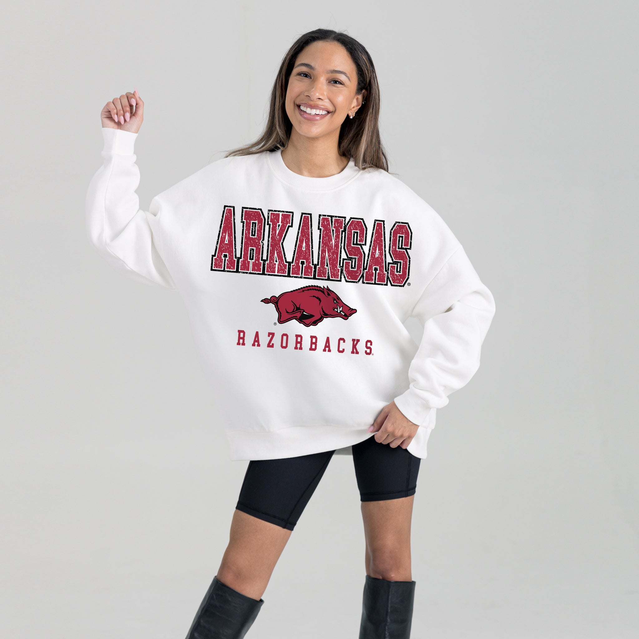 ARKANSAS RAZORBACKS FREESTYLE PREMIUM FLEECE DROP SHOULDER CREWNECK PULLOVER