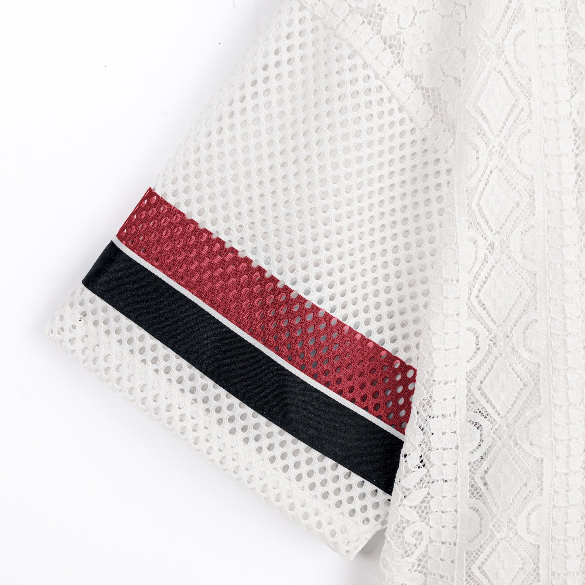 Bold, breathable, and completely unexpected, this lace jersey is a total scene-stealer. Featuring a full lace body, satin and embroidered team graphics, and printed sport stripes, it’s a glam-meets-game-day statement piece made to rep Arkansas Razorbacks your way.