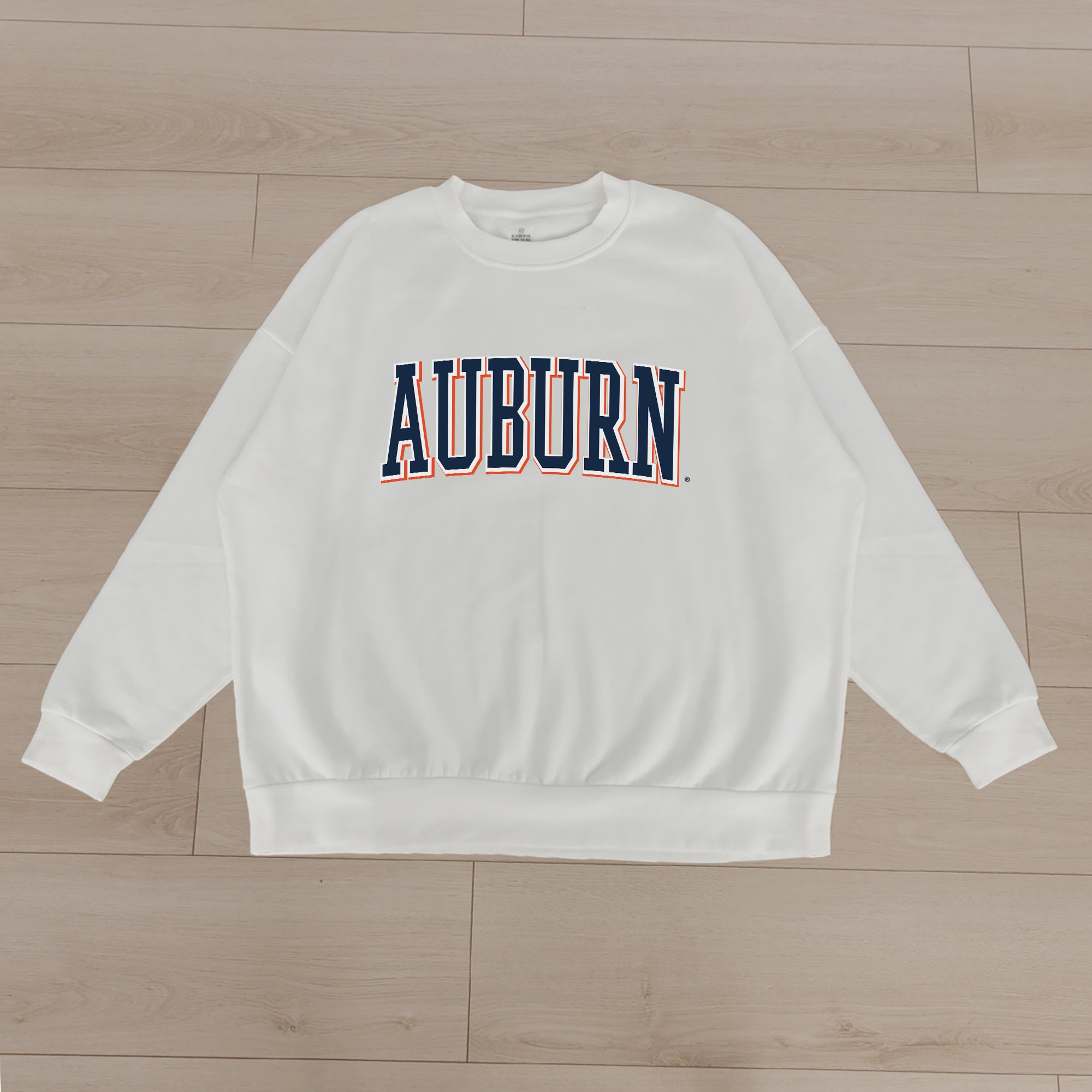 Stand out from the crowd in our Auburn Tigers premium fleece long sleeve sweatshirt. Boasting an oversized fit, crewneck and ribbed knit neckline, wrists, and waistband, it effortlessly blends comfort with fashion. Show your support for your favorite school or team in this irresistibly soft sweatshirt.
