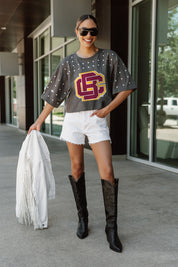 Shine with pride in our Bethune-Cookman Wildcats all-over rhinestone cropped tee with yoke. Whether you're cheering from the stands or hitting the town, embrace effortless style and comfort while standing out from the crowd.