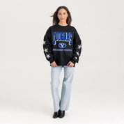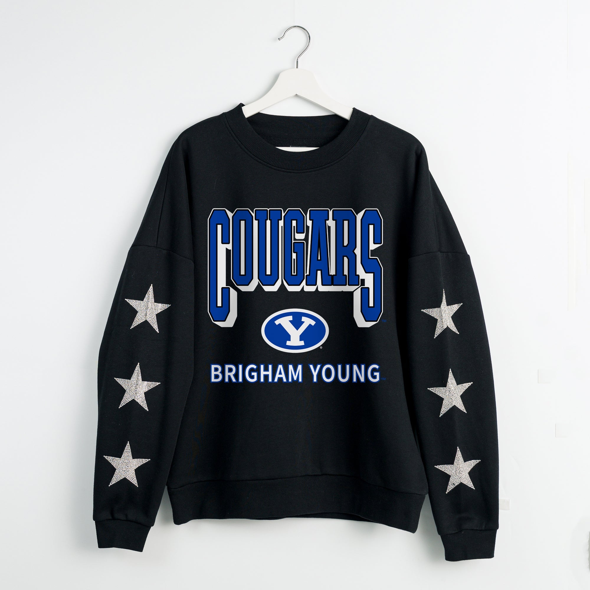 BYU COUGARS PURE VICTORY EMBELLISHED STAR SLEEVE CREWNECK PULLOVER