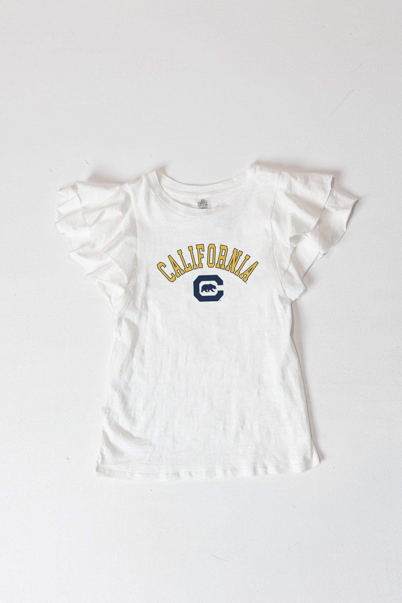 Feel the excitement of game day with our California Golden Bears flutter sleeve crewneck top. This short sleeve ruffle sleeve slub knit top is a versatile addition to any wardrobe. Perfect for fans who want to look good and feel great.