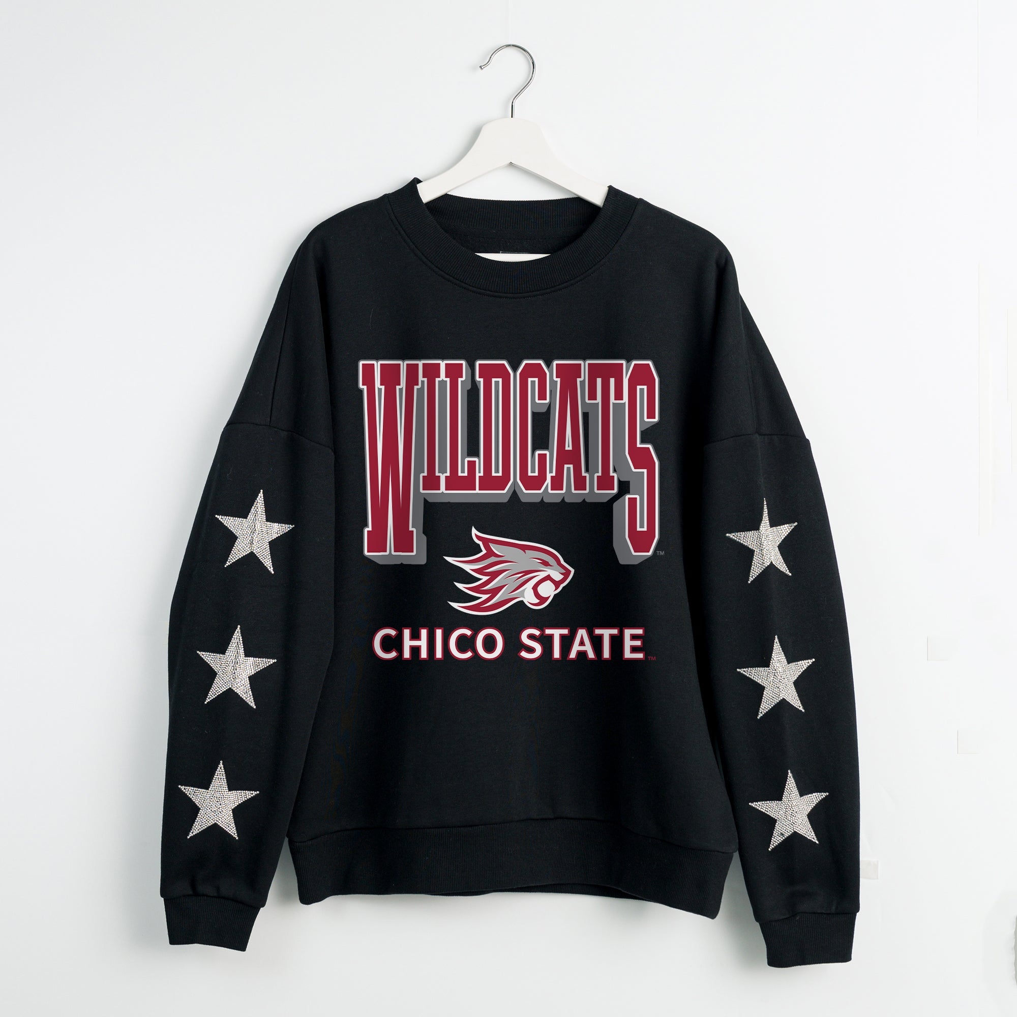 CHICO STATE WILDCATS PURE VICTORY EMBELLISHED STAR SLEEVE CREWNECK PULLOVER