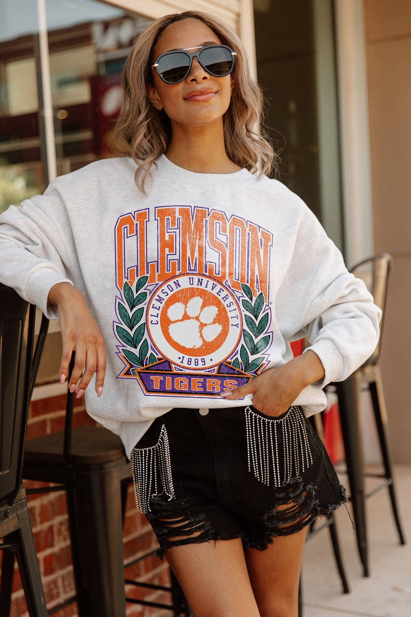 CLEMSON TIGERS Go Fight Win Drop-Shoulder Crew Pullover By Madi Prewett Troutt