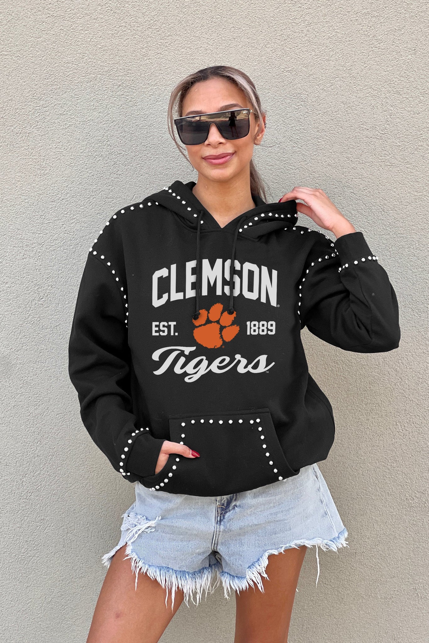 CLEMSON TIGERS Here For It Studded-Detail Fleece Hoodie