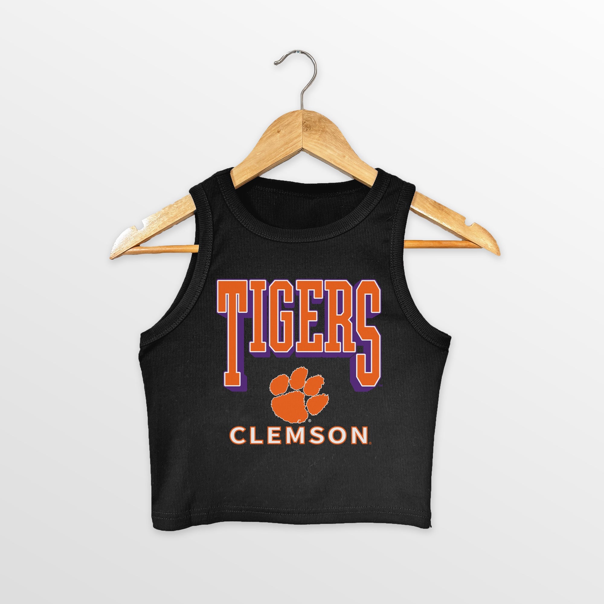 This essential ribbed crop tank is perfect for game day or everyday wear. Cheer on the Clemson Tigers with this winning style. The ribbed fabric is soft and comfortable, and the cropped length is perfect for pairing with high-waisted jeans or shorts.