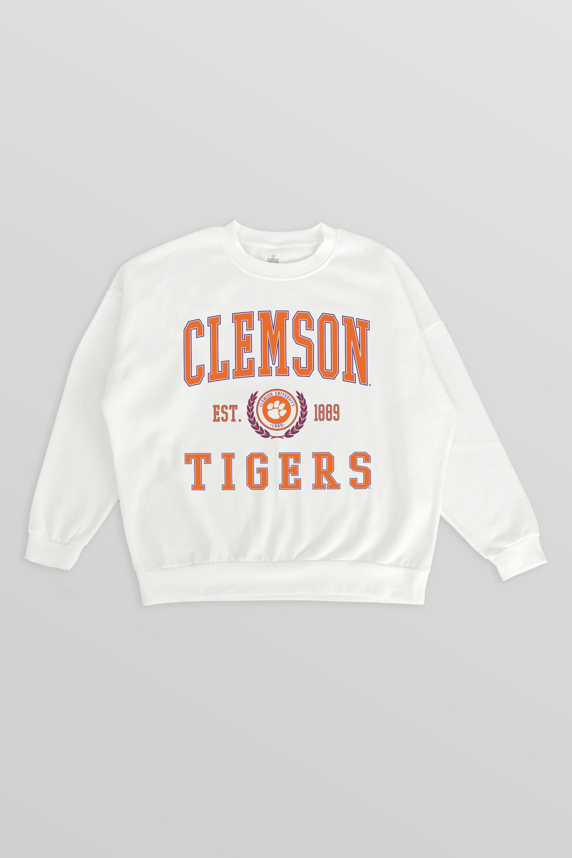Stand out from the crowd in our Clemson Tigers premium fleece long sleeve sweatshirt. Boasting an oversized fit, crewneck and ribbed knit neckline, wrists, and waistband, it effortlessly blends comfort with fashion. Show your support for your favorite school or team in this irresistibly soft sweatshirt.