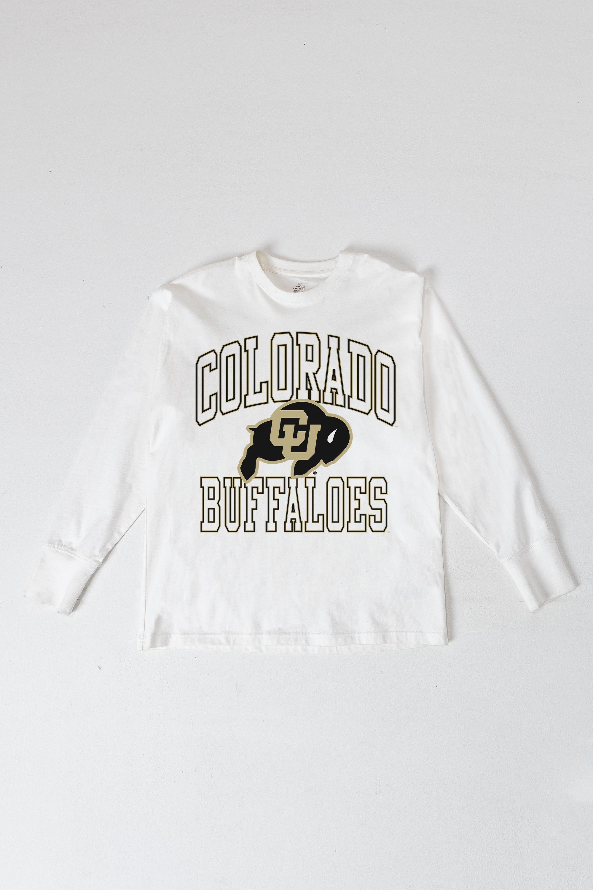 Bring the energy of the game to your wardrobe with our Colorado Buffaloes oversized long sleeve tee with ribbed neckline and cuffs. Showing off your Colorado Buffaloes spirit will be a breeze.