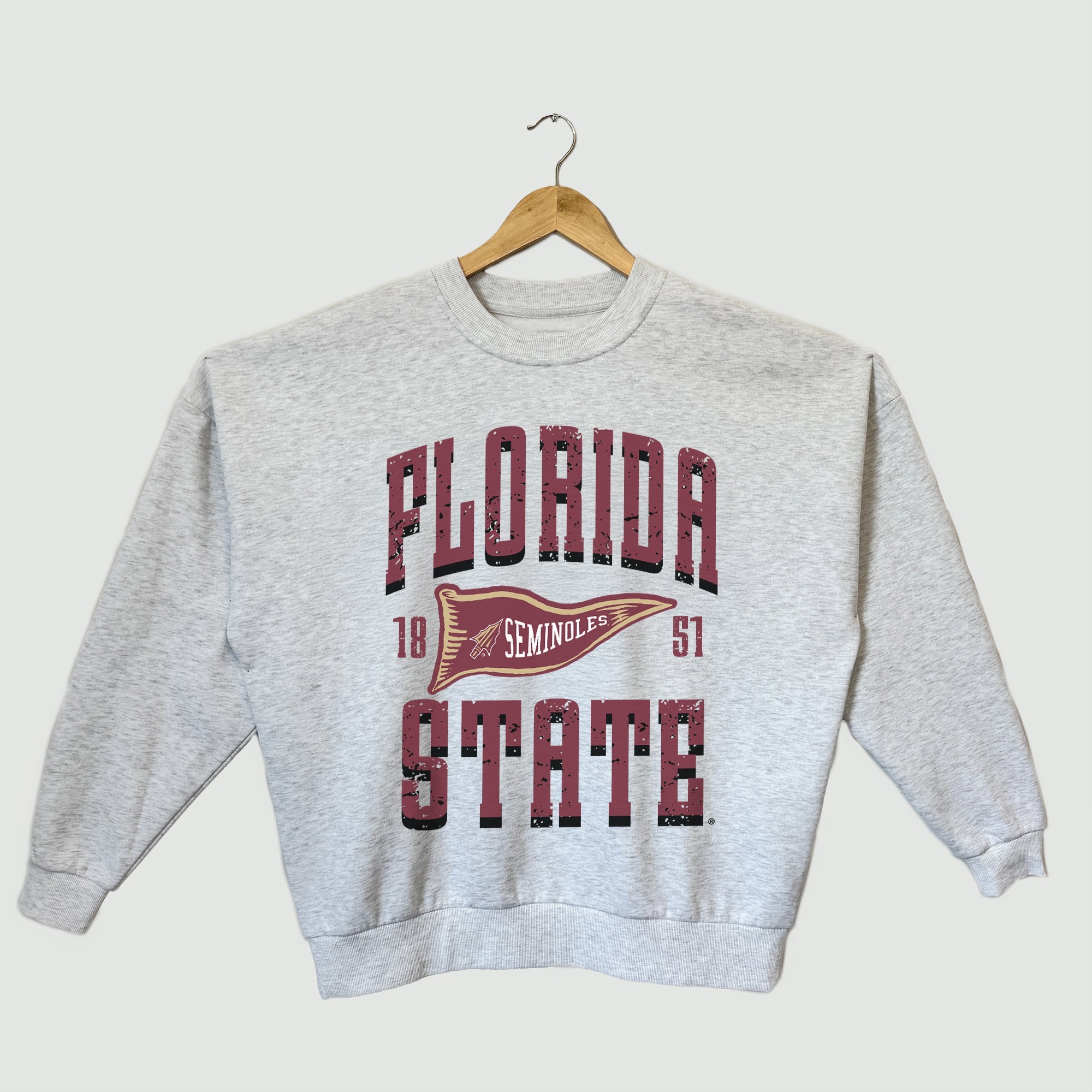 FLORIDA STATE SEMINOLES PENNANT PRIDE PREMIUM FLEECE DROP SHOULDER CREWNECK PULLOVER