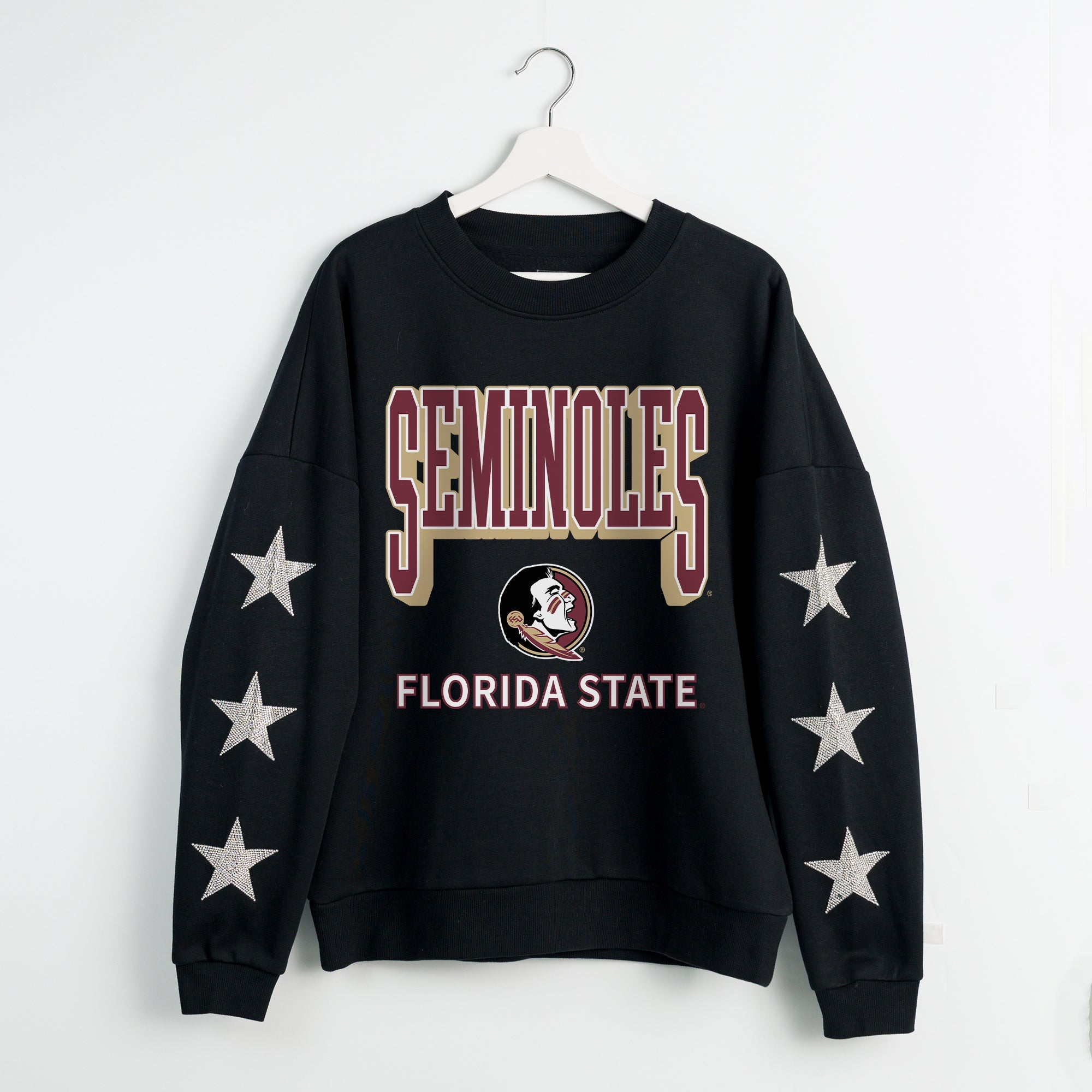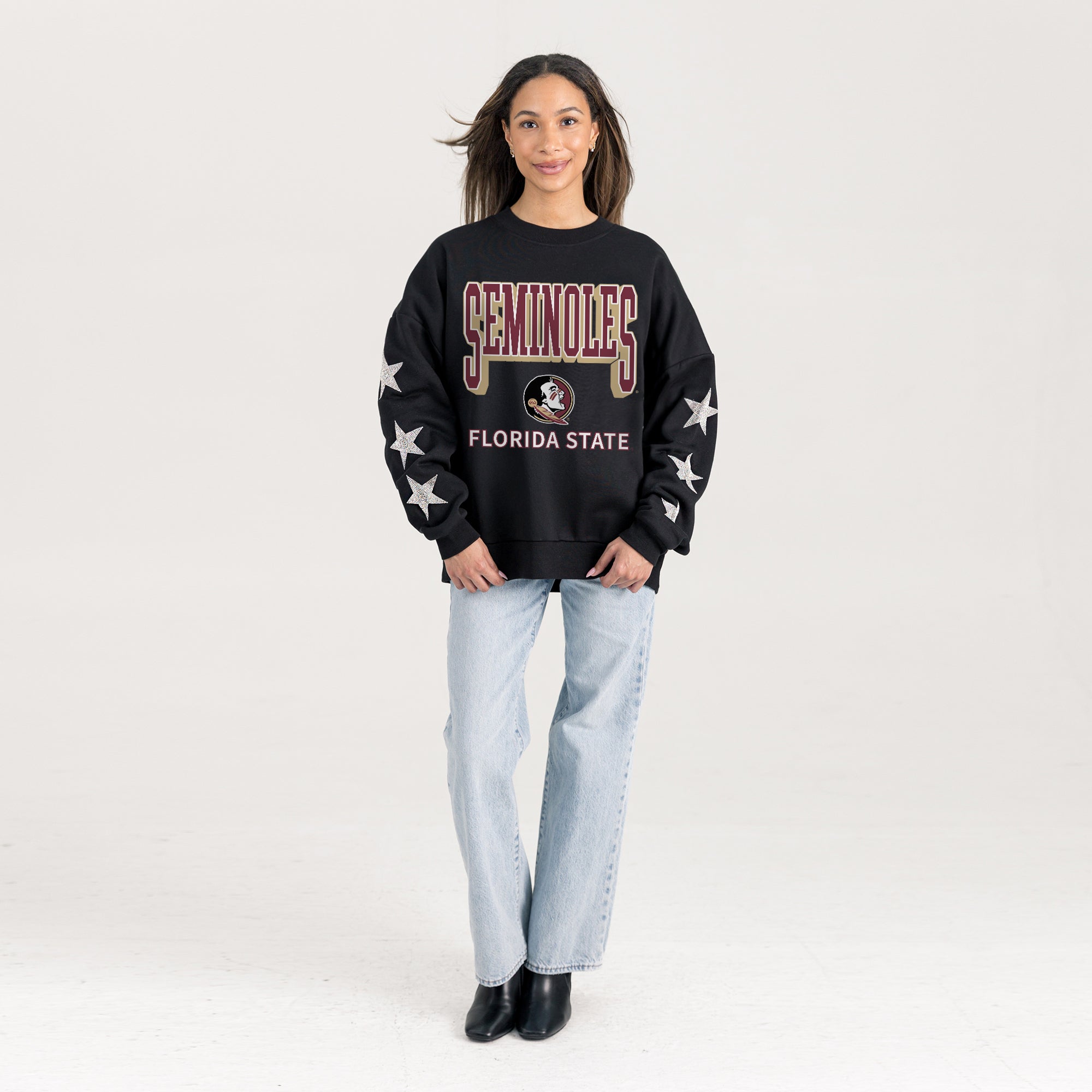 FLORIDA STATE SEMINOLES PURE VICTORY EMBELLISHED STAR SLEEVE CREWNECK PULLOVER
