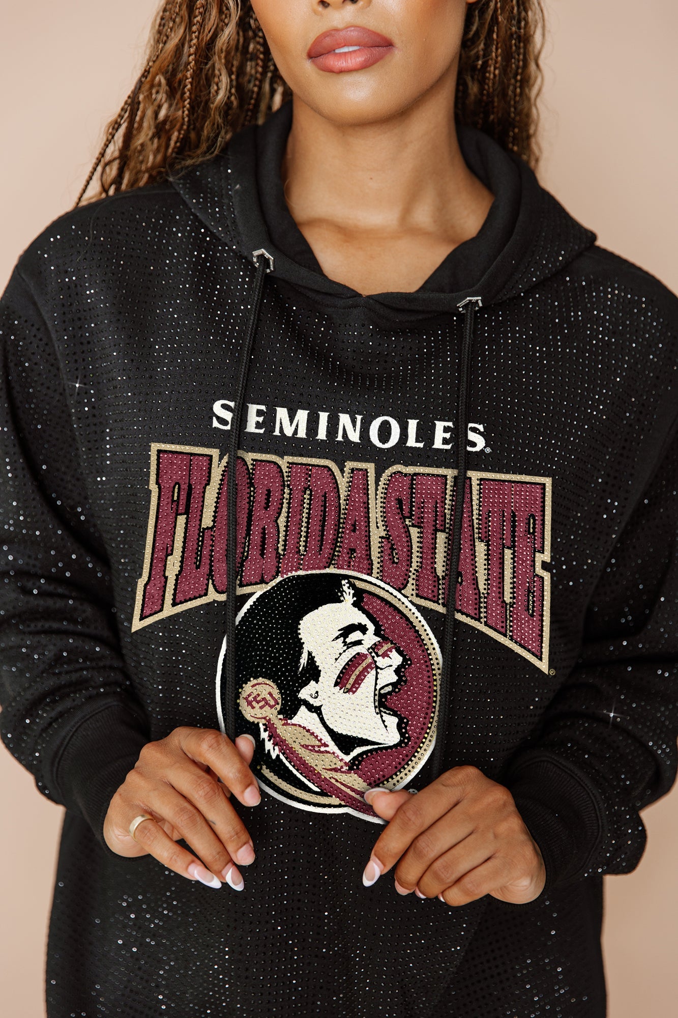 Feel the excitement of game day with our Florida State Seminoles all-over micro-rhinestone sparkle hooded sweatshirt. Whether at the stadium or on the street, you'll love this look.