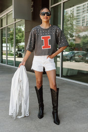 ILLINOIS FIGHTING ILLINI Making Moves Rhinestone Crop Tee With Yoke