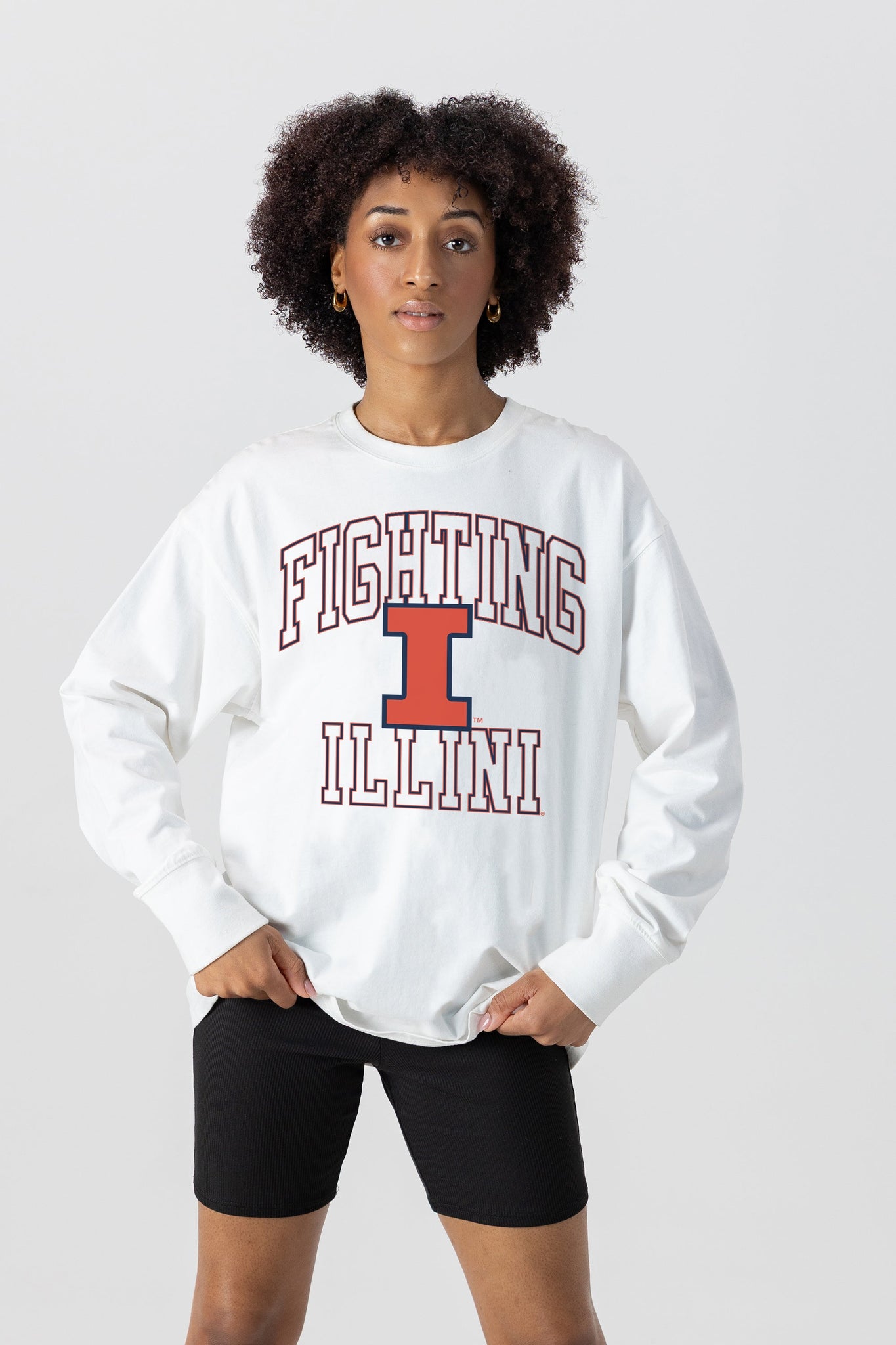 Bring the energy of the game to your wardrobe with our Illinois Fighting Illini oversized long sleeve tee with ribbed neckline and cuffs. Showing off your Illinois Fighting Illini spirit will be a breeze.