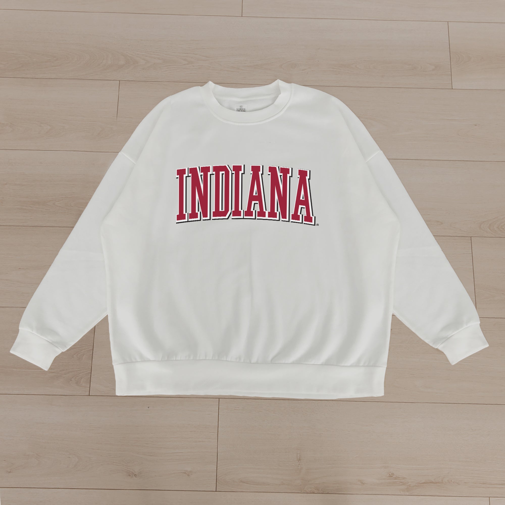 Stand out from the crowd in our Indiana Hoosiers premium fleece long sleeve sweatshirt. Boasting an oversized fit, crewneck and ribbed knit neckline, wrists, and waistband, it effortlessly blends comfort with fashion. Show your support for your favorite school or team in this irresistibly soft sweatshirt.