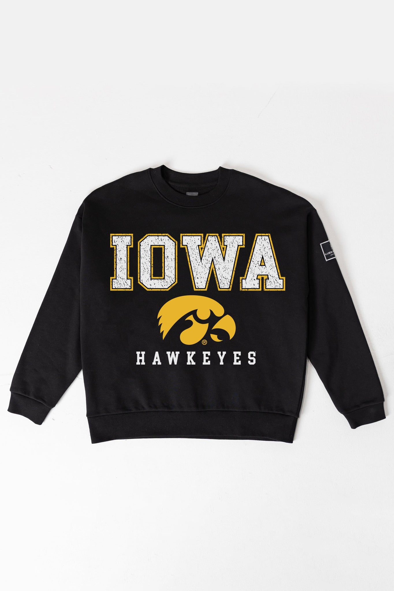 Get ready to cheer on your Iowa Hawkeyes with our black label premium fleece drop-shoulder crewneck. Featuring a ribbed knit neckline, cuffs, and waistband, you'll be standing out whether it's game day or every day.