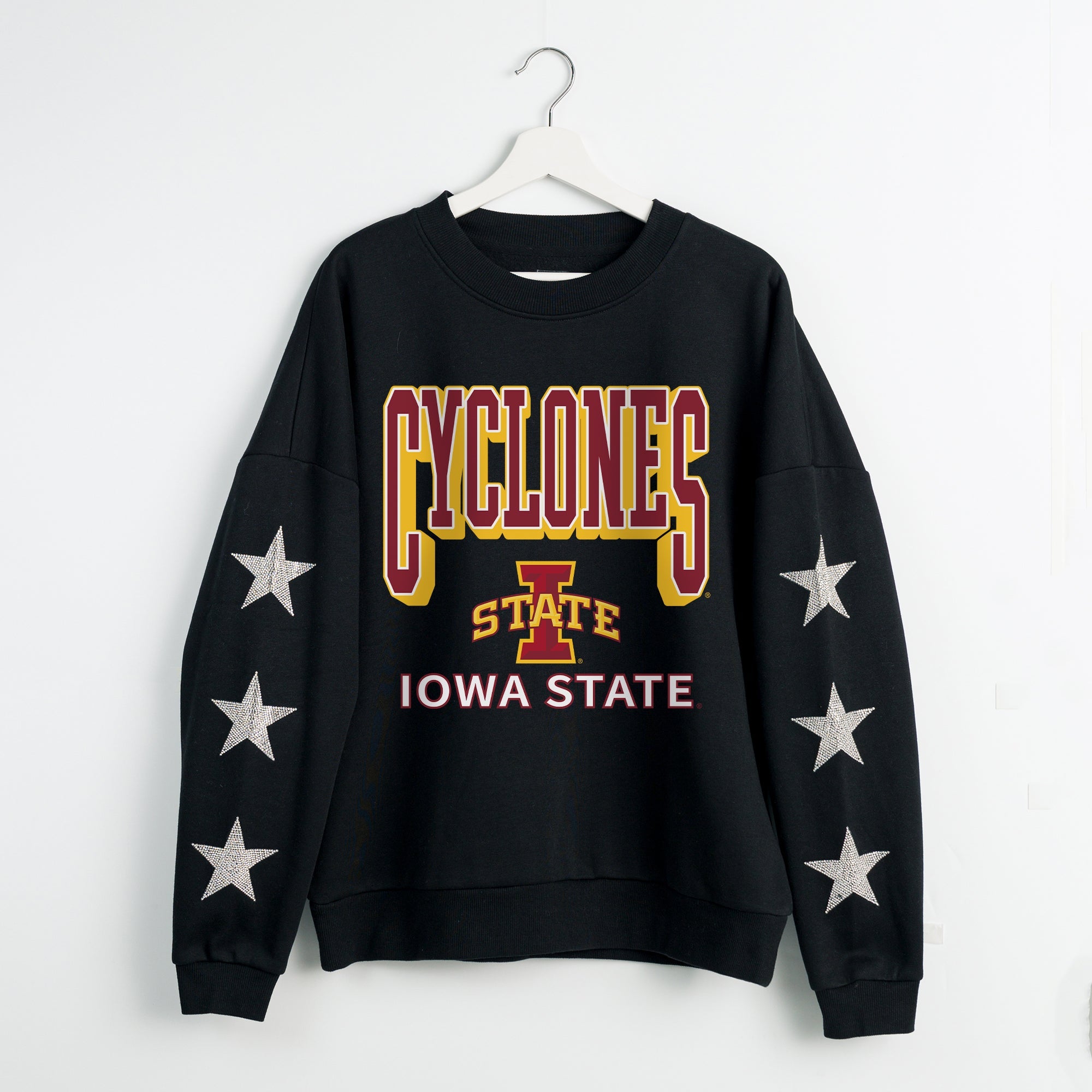 IOWA STATE CYCLONES PURE VICTORY EMBELLISHED STAR SLEEVE CREWNECK PULLOVER