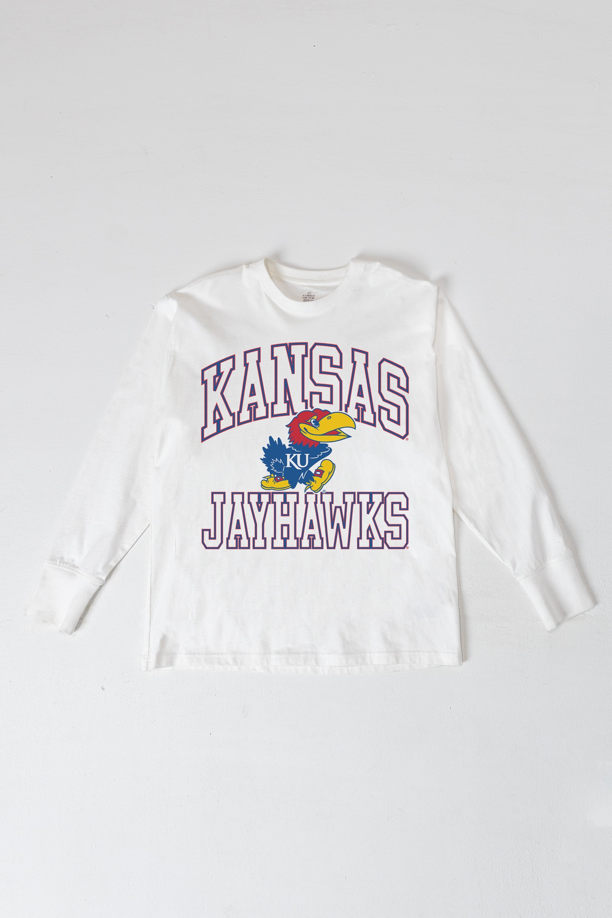 Bring the energy of the game to your wardrobe with our Kansas Jayhawks oversized long sleeve tee with ribbed neckline and cuffs. Showing off your Kansas Jayhawks spirit will be a breeze.