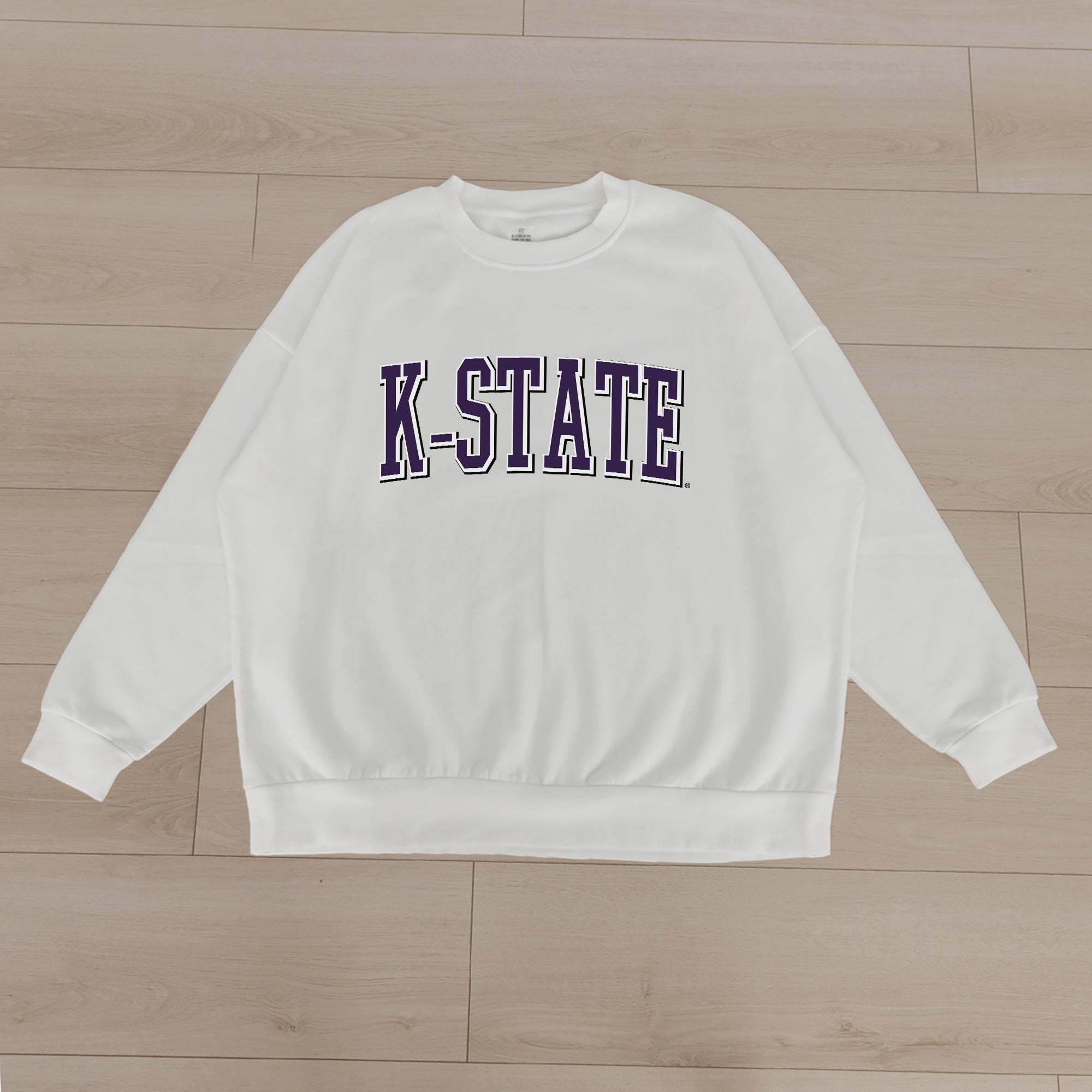 Stand out from the crowd in our Kansas State Wildcats premium fleece long sleeve sweatshirt. Boasting an oversized fit, crewneck and ribbed knit neckline, wrists, and waistband, it effortlessly blends comfort with fashion. Show your support for your favorite school or team in this irresistibly soft sweatshirt.