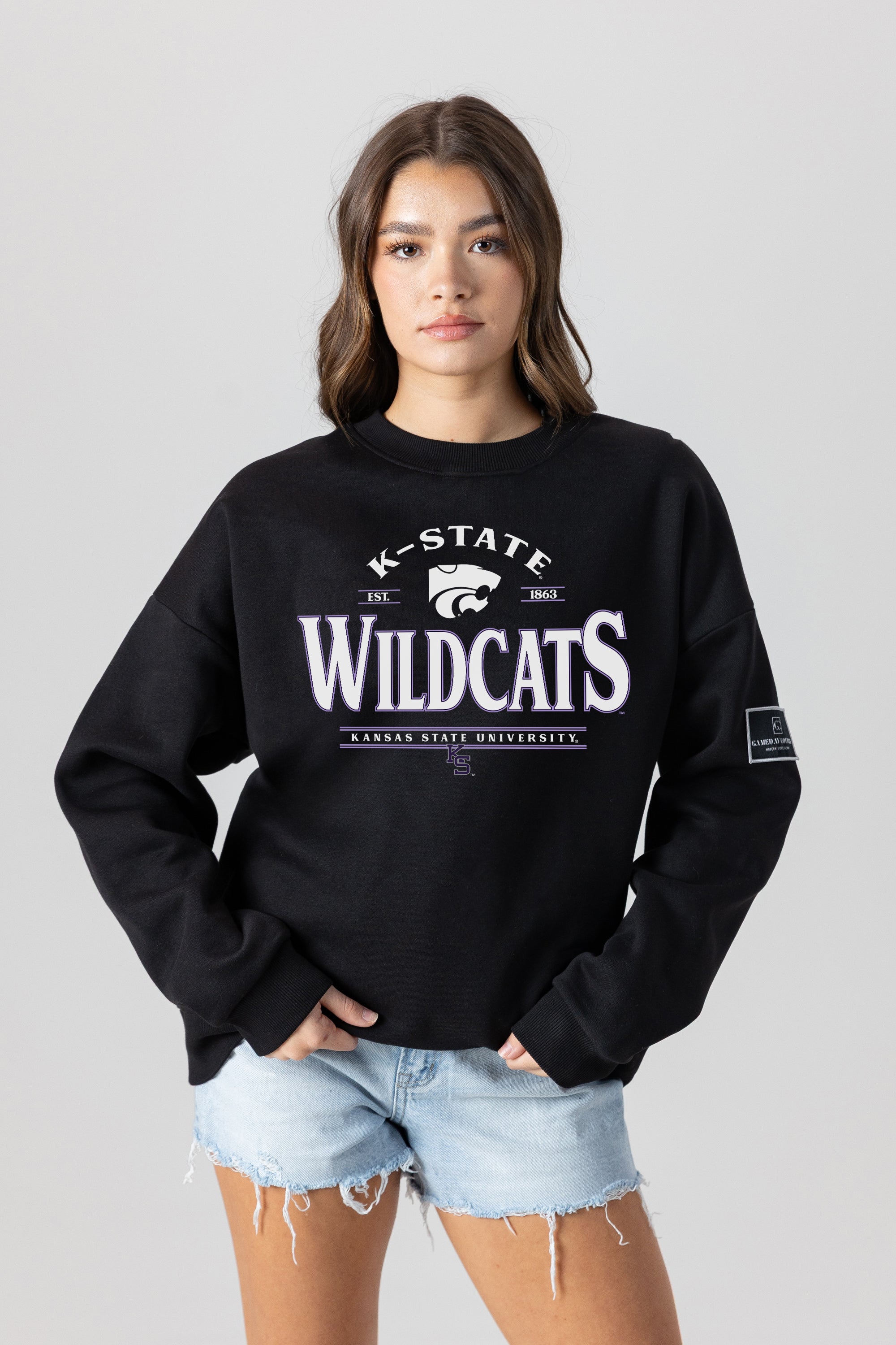 Get ready to cheer on your Kansas State Wildcats with our black label premium fleece drop-shoulder crewneck with ribbed knit neckline, cuffs, and waistband. From the game to the everyday, this is your go-to choice.