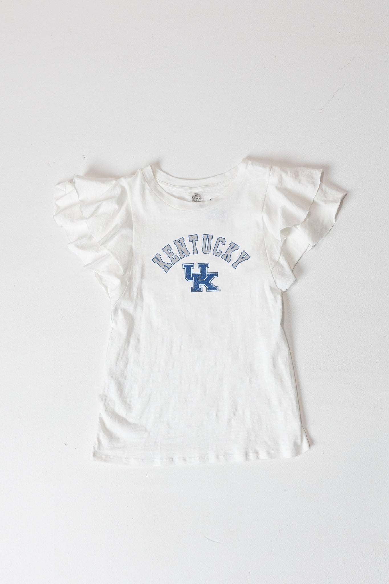 Feel the excitement of game day with our Kentucky Wildcats flutter sleeve crewneck top. This short sleeve ruffle sleeve slub knit top is a versatile addition to any wardrobe. Perfect for fans who want to look good and feel great.