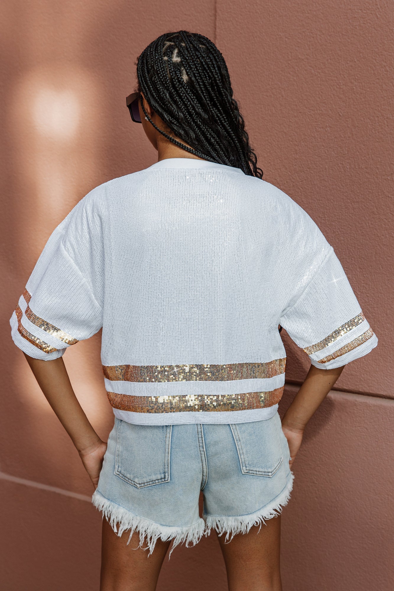 Game day just got better with our Lsu Tigers full sequin sparkle sports-striped crop jersey. Be the ultimate fan with this versatile and trendy item.