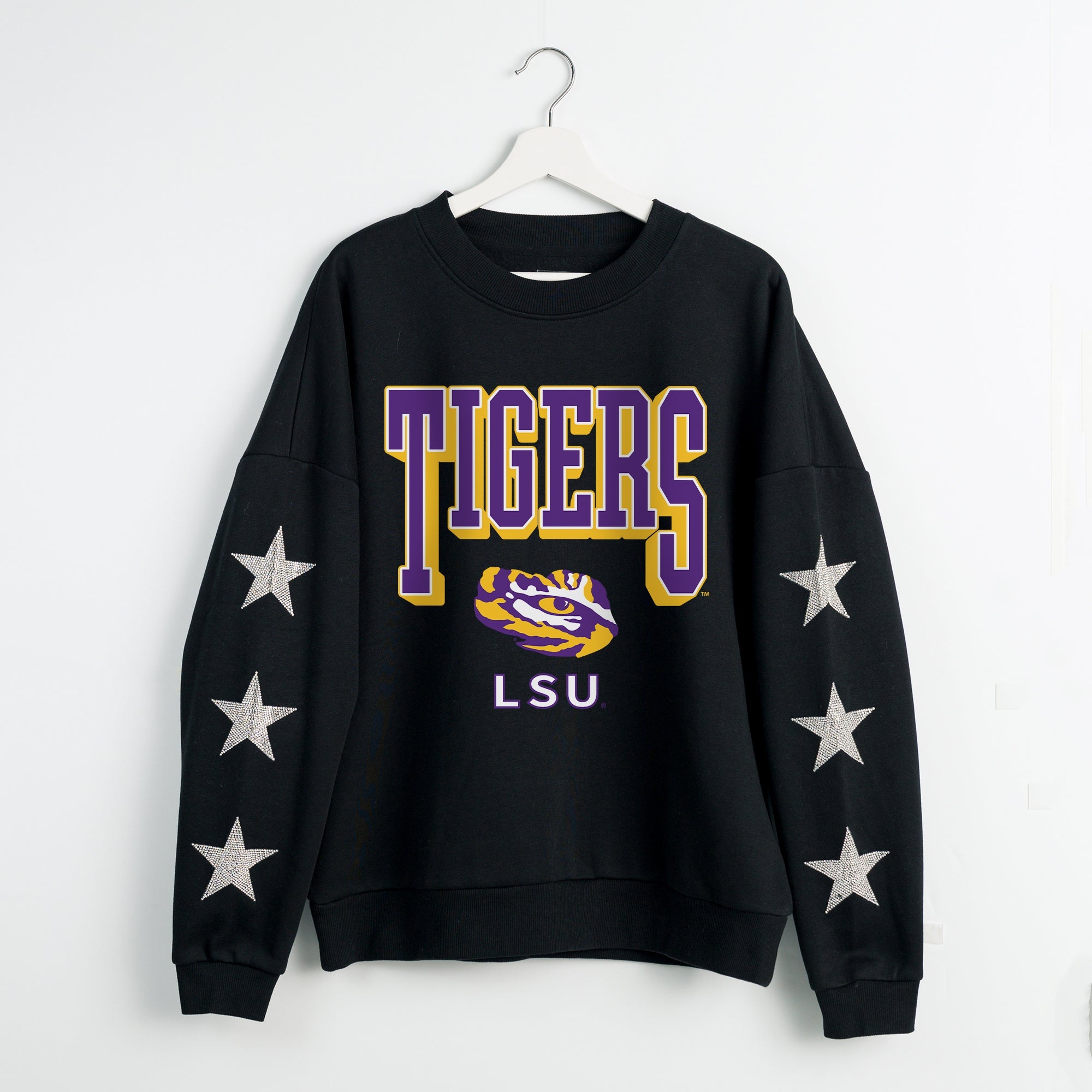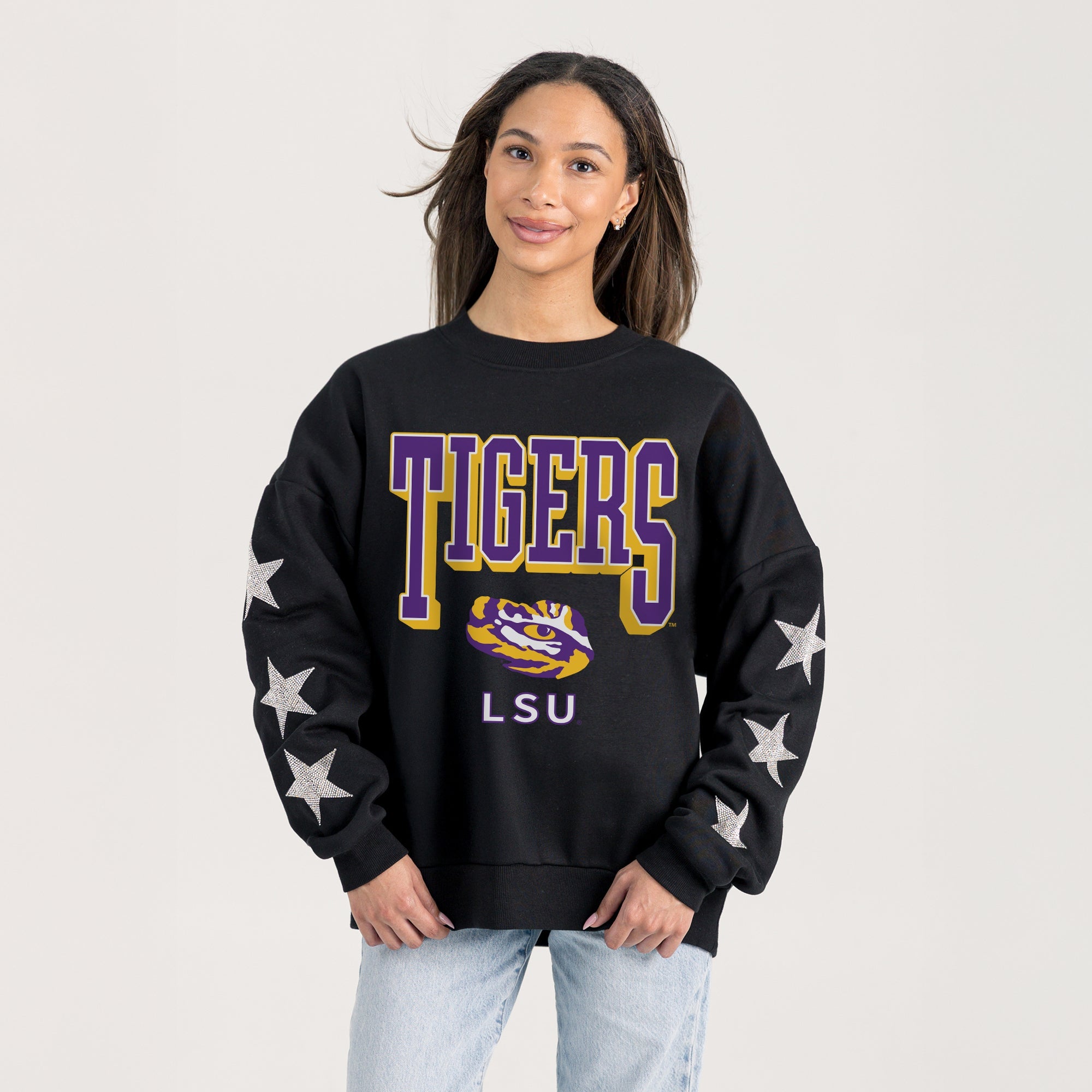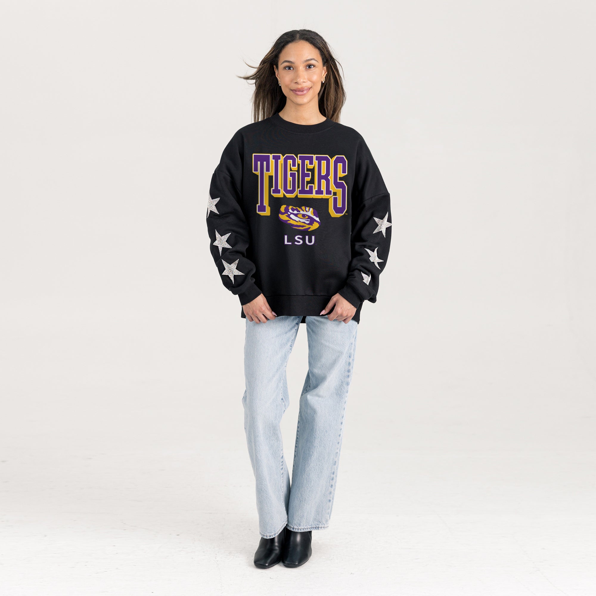 LSU TIGERS PURE VICTORY EMBELLISHED STAR SLEEVE CREWNECK PULLOVER