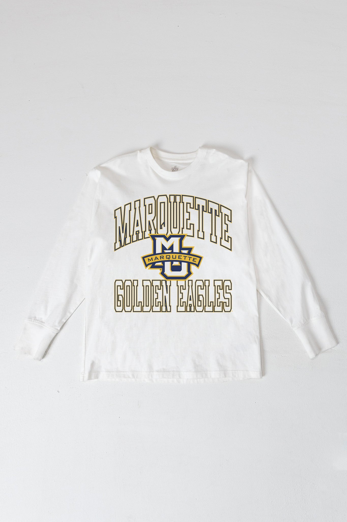 Bring the energy of the game to your wardrobe with our Marquette Golden Eagles oversized long sleeve tee with ribbed neckline and cuffs. Showing off your Marquette Golden Eagles spirit will be a breeze.