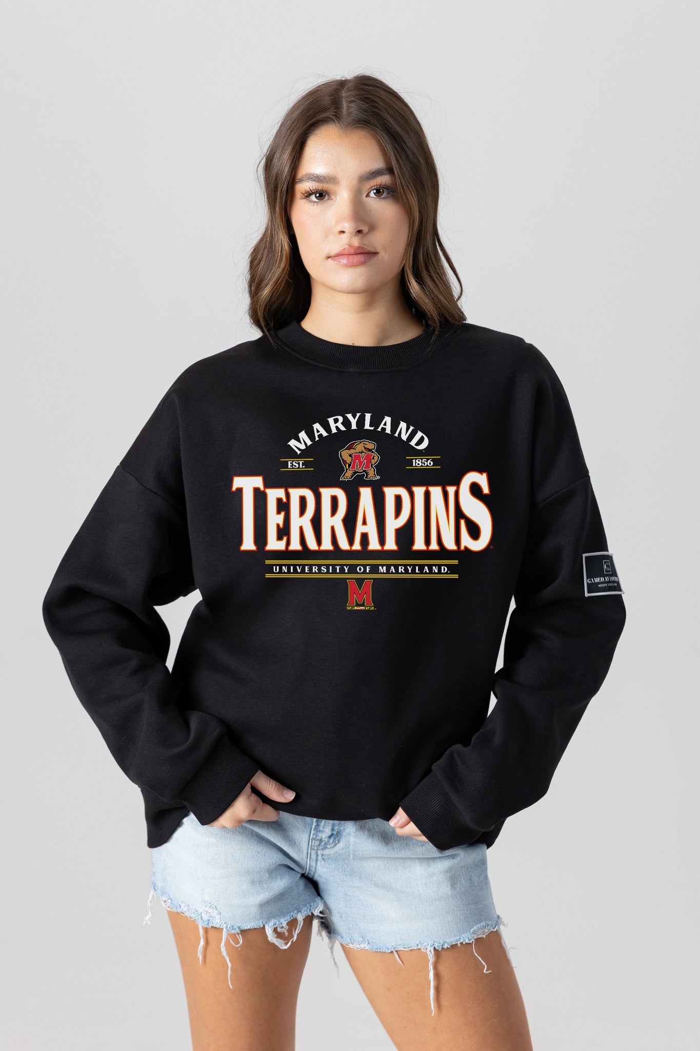 Get ready to cheer on your Maryland Terrapins with our black label premium fleece drop-shoulder crewneck with ribbed knit neckline, cuffs, and waistband. From the game to the everyday, this is your go-to choice.
