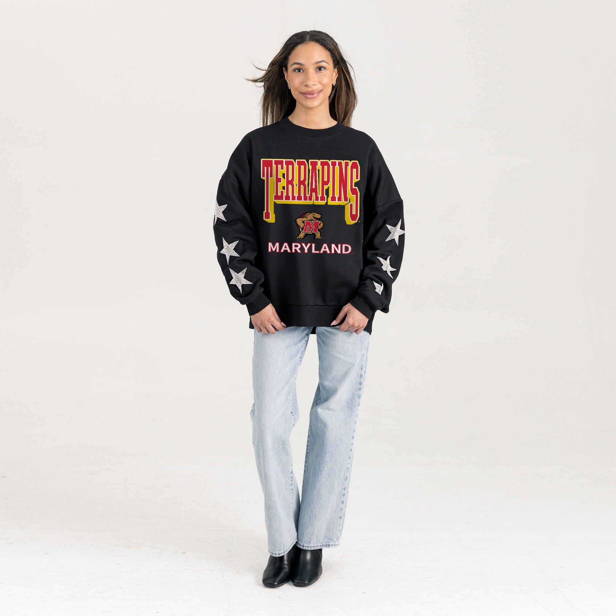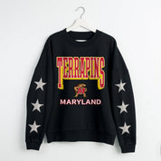 MARYLAND TERRAPINS PURE VICTORY EMBELLISHED STAR SLEEVE CREWNECK PULLOVER