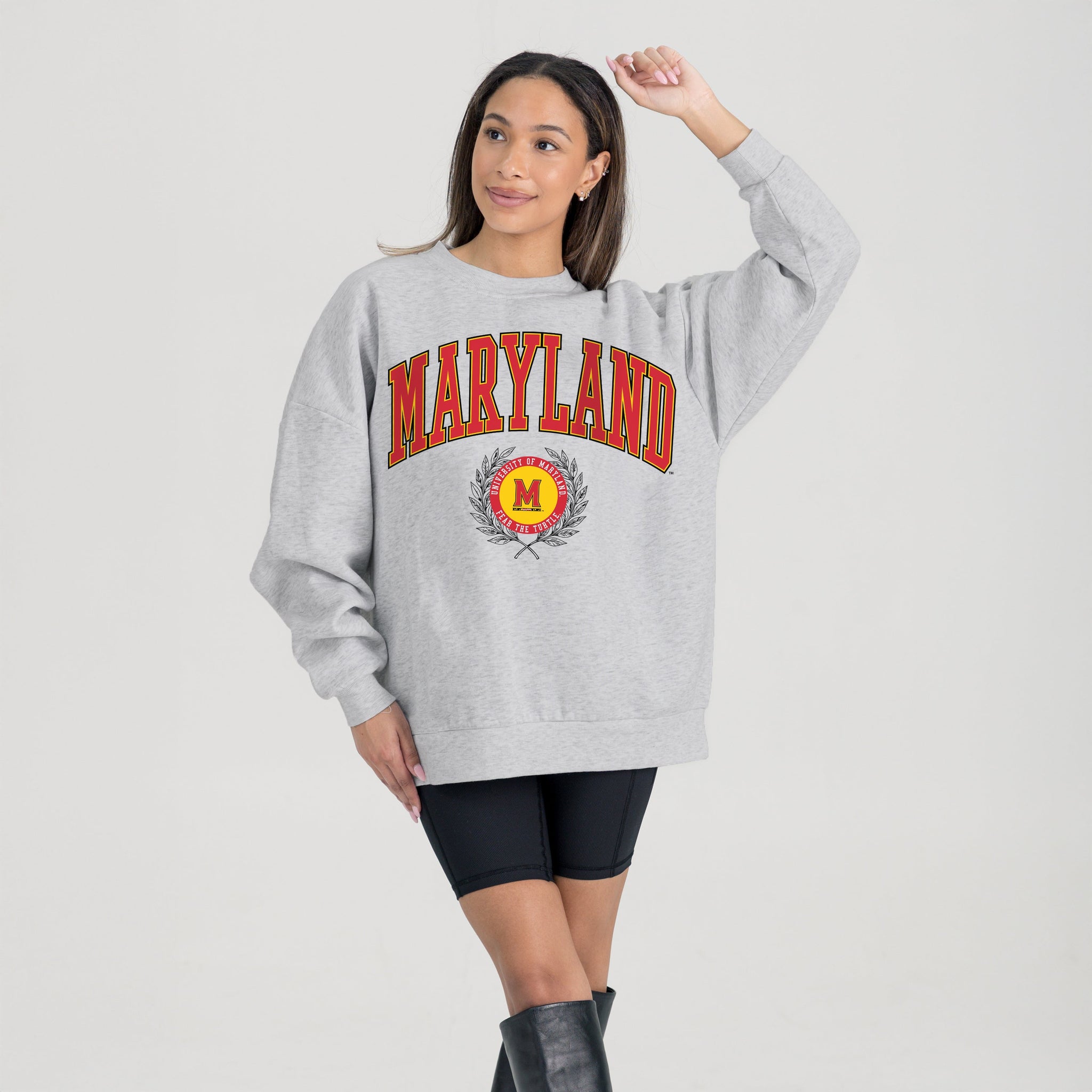 Stand out from the crowd in our Maryland Terrapins premium fleece long sleeve sweatshirt. Boasting an oversized fit, crewneck and ribbed knit neckline, wrists, and waistband, it effortlessly blends comfort with fashion. Show your support for your favorite school or team in this irresistibly soft sweatshirt.