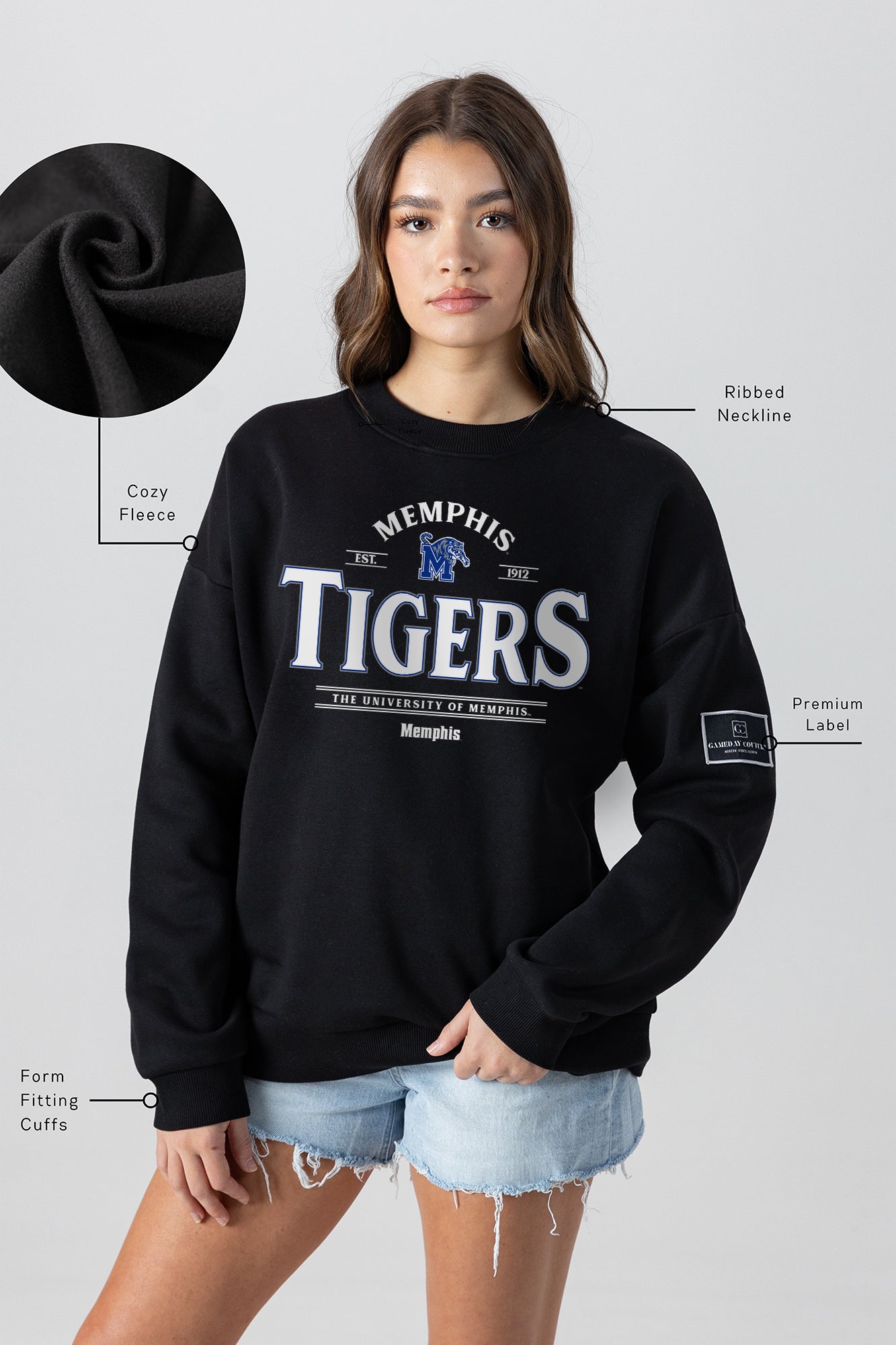 Get ready to cheer on your Memphis Tigers with our black label premium fleece drop-shoulder crewneck with ribbed knit neckline, cuffs, and waistband. From the game to the everyday, this is your go-to choice.