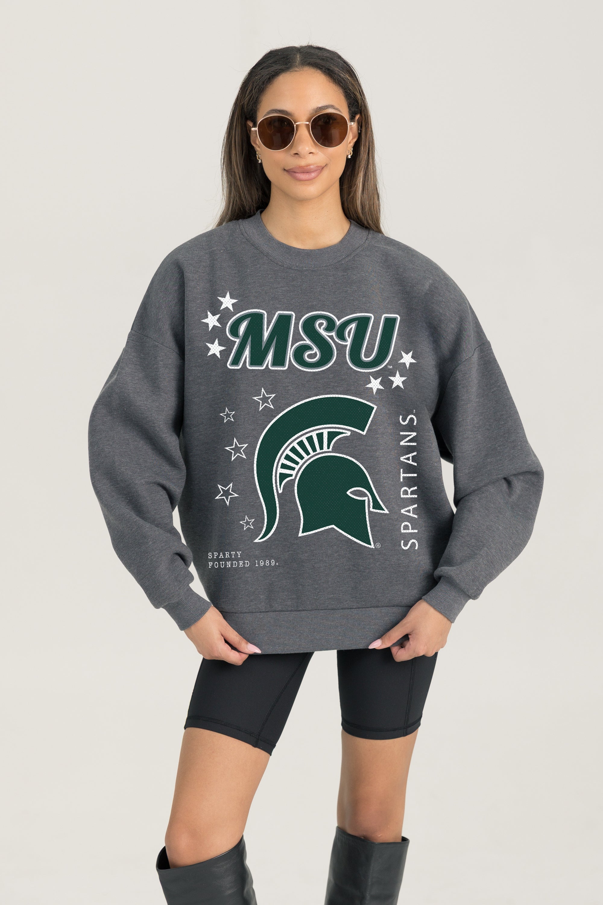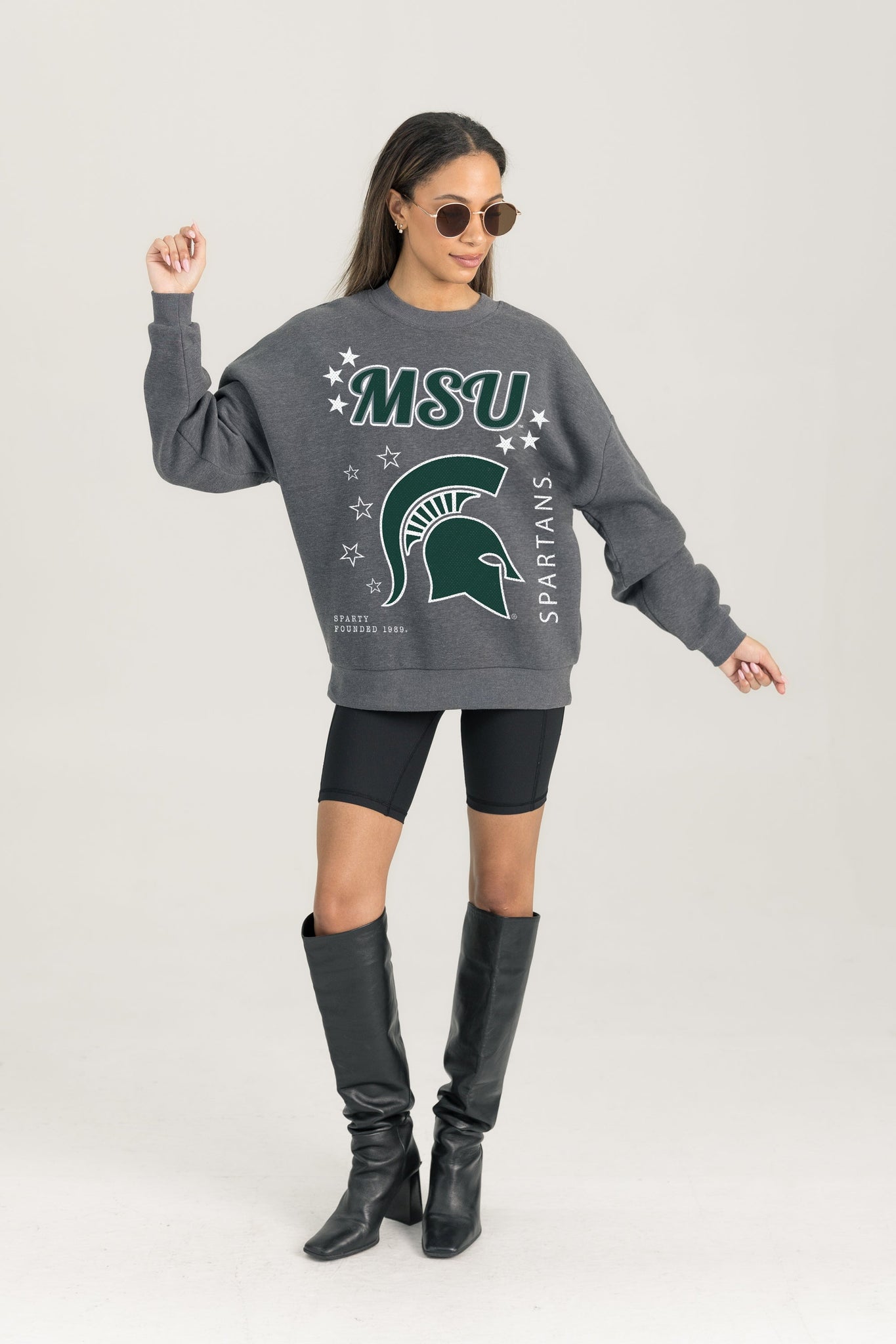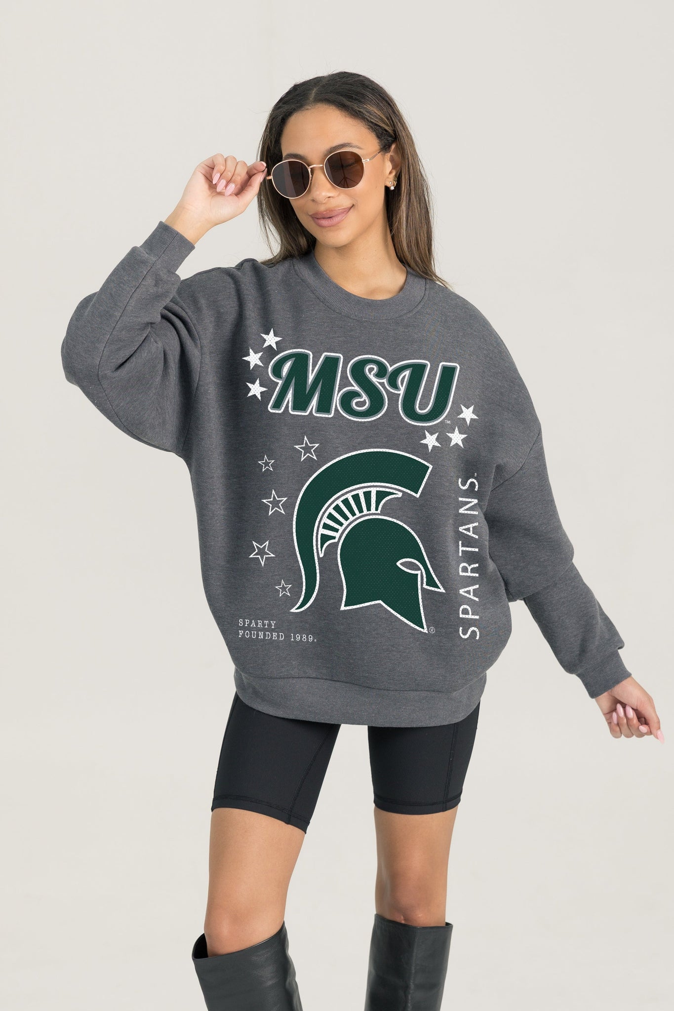 Stand out from the crowd in our Michigan State Spartans premium fleece long sleeve sweatshirt. Boasting an oversized fit, crewneck and ribbed knit neckline, wrists, and waistband, it effortlessly blends comfort with fashion. Show your support for your favorite school or team in this irresistibly soft sweatshirt.