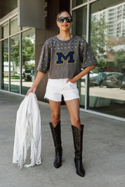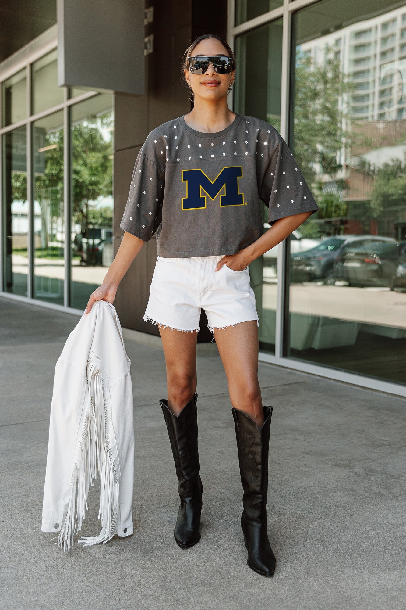 MICHIGAN WOLVERINES Making Moves Rhinestone Crop Tee With Yoke