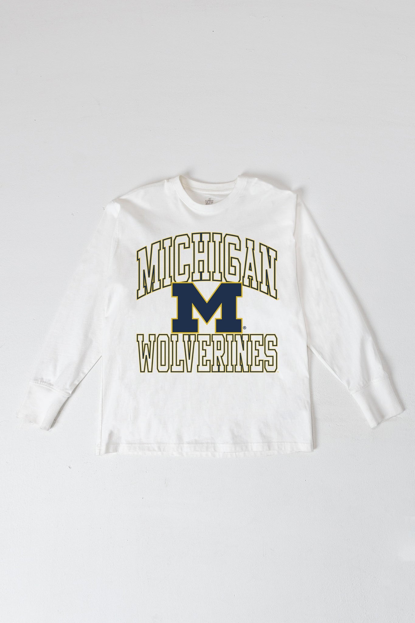 Bring the energy of the game to your wardrobe with our Michigan Wolverines oversized long sleeve tee with ribbed neckline and cuffs. Showing off your Michigan Wolverines spirit will be a breeze.