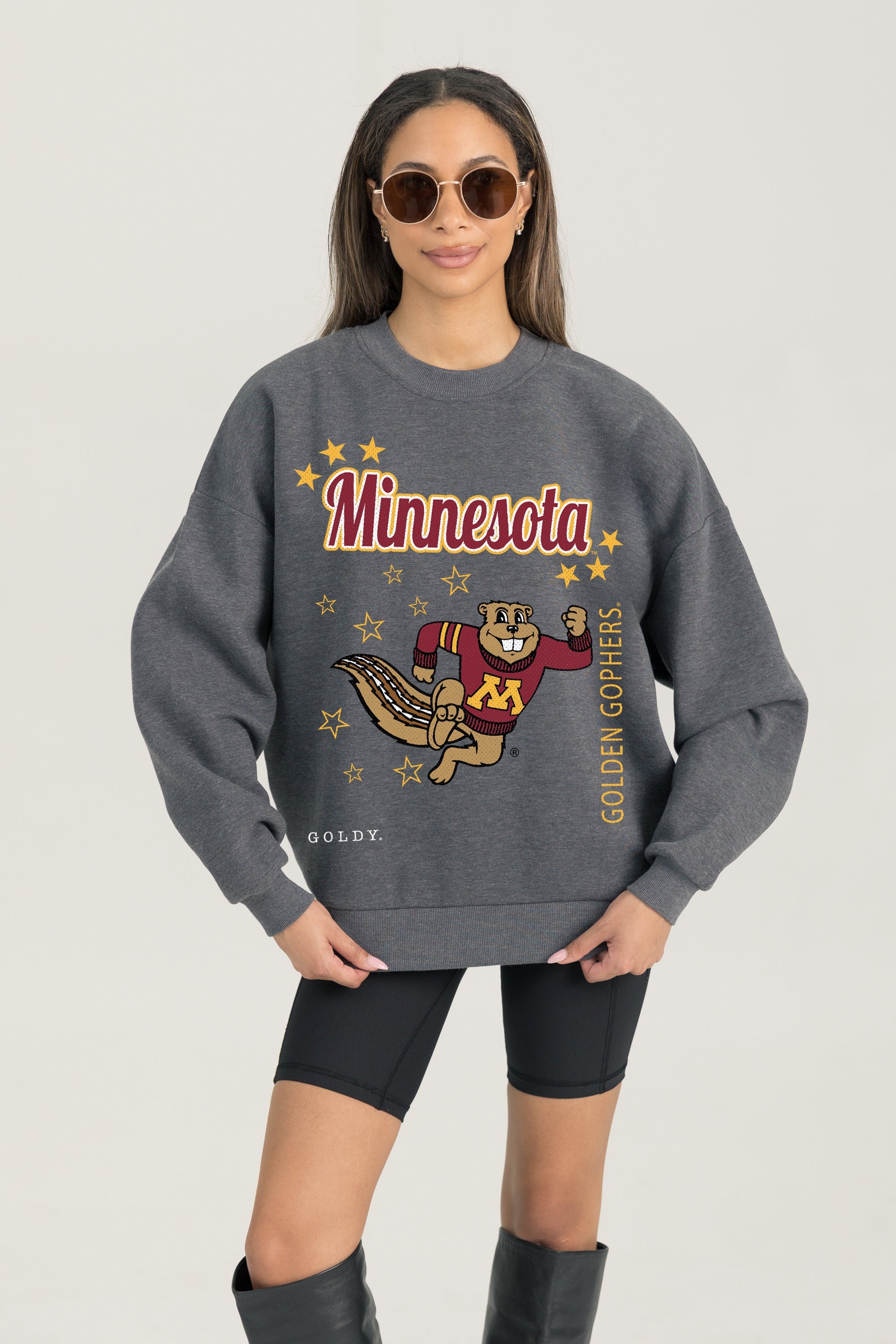 Stand out from the crowd in our Minnesota Golden Gophers premium fleece long sleeve sweatshirt. Boasting an oversized fit, crewneck and ribbed knit neckline, wrists, and waistband, it effortlessly blends comfort with fashion. Show your support for your favorite school or team in this irresistibly soft sweatshirt.